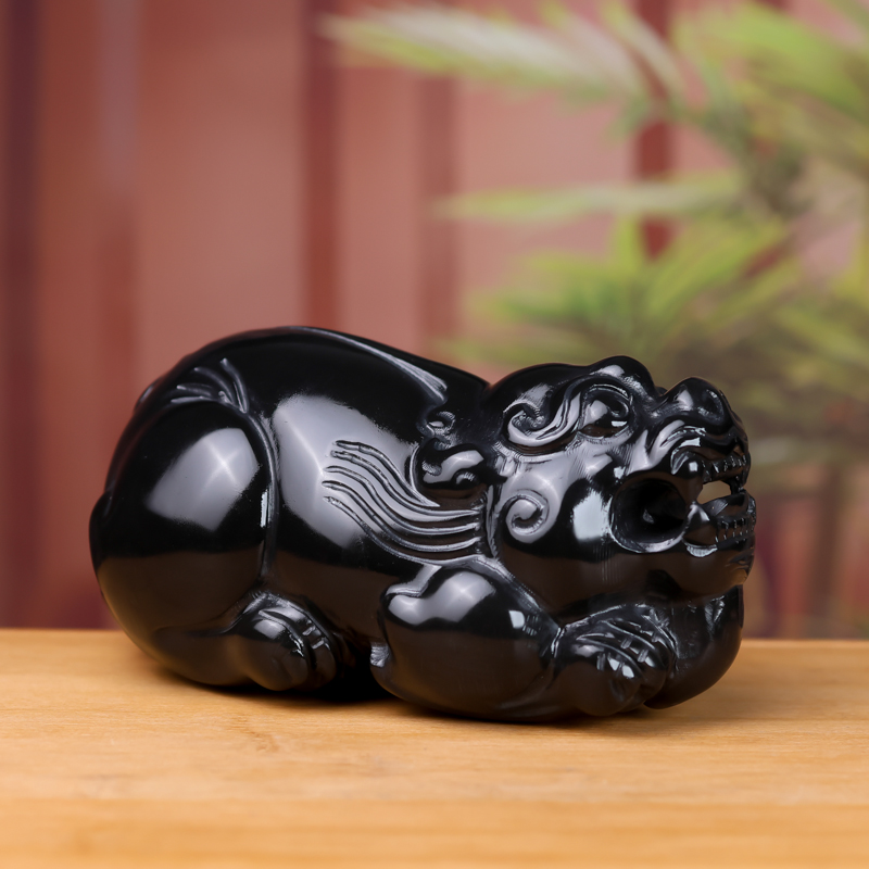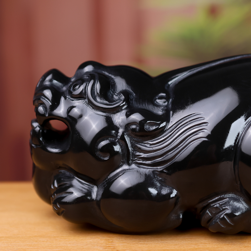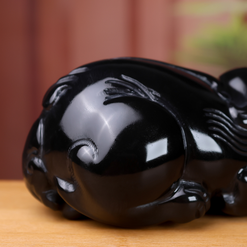 天然黑墨玉卧式貔貅摆件居家办公室黑曜石貔貅摆设酒柜工艺礼品摆