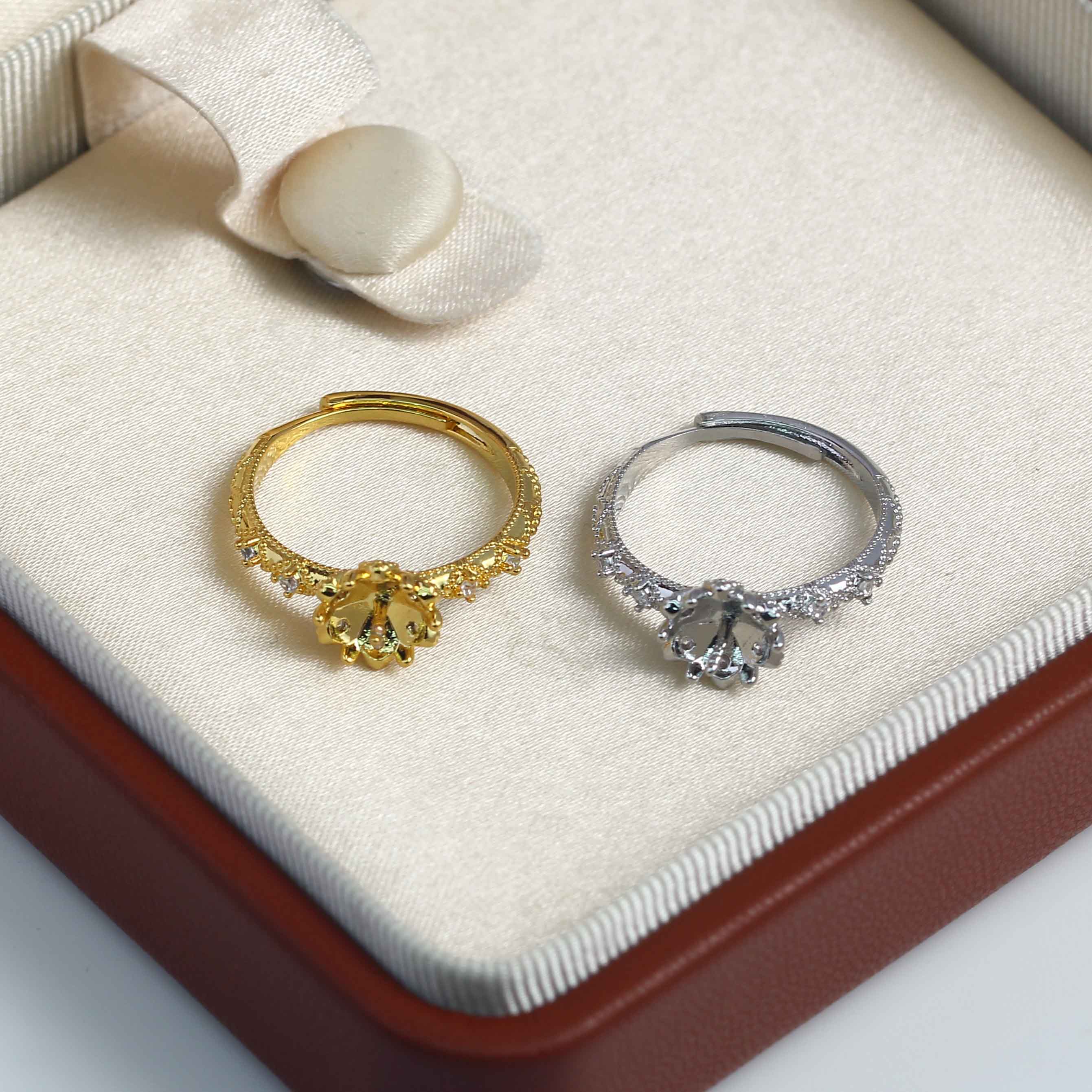 DIY珍珠配件新款铜镀金镶锆复古皇冠戒指空托时尚百搭气质