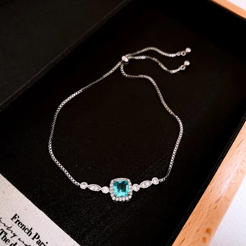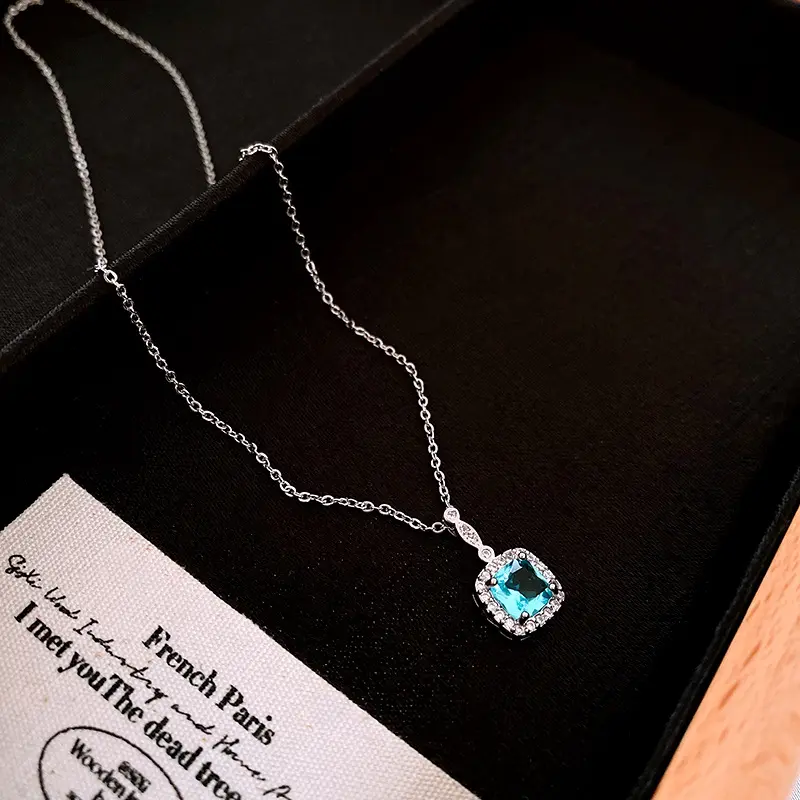 海蓝色正方形锆石项链韩系简约高级感锁骨链森系小清新项饰女