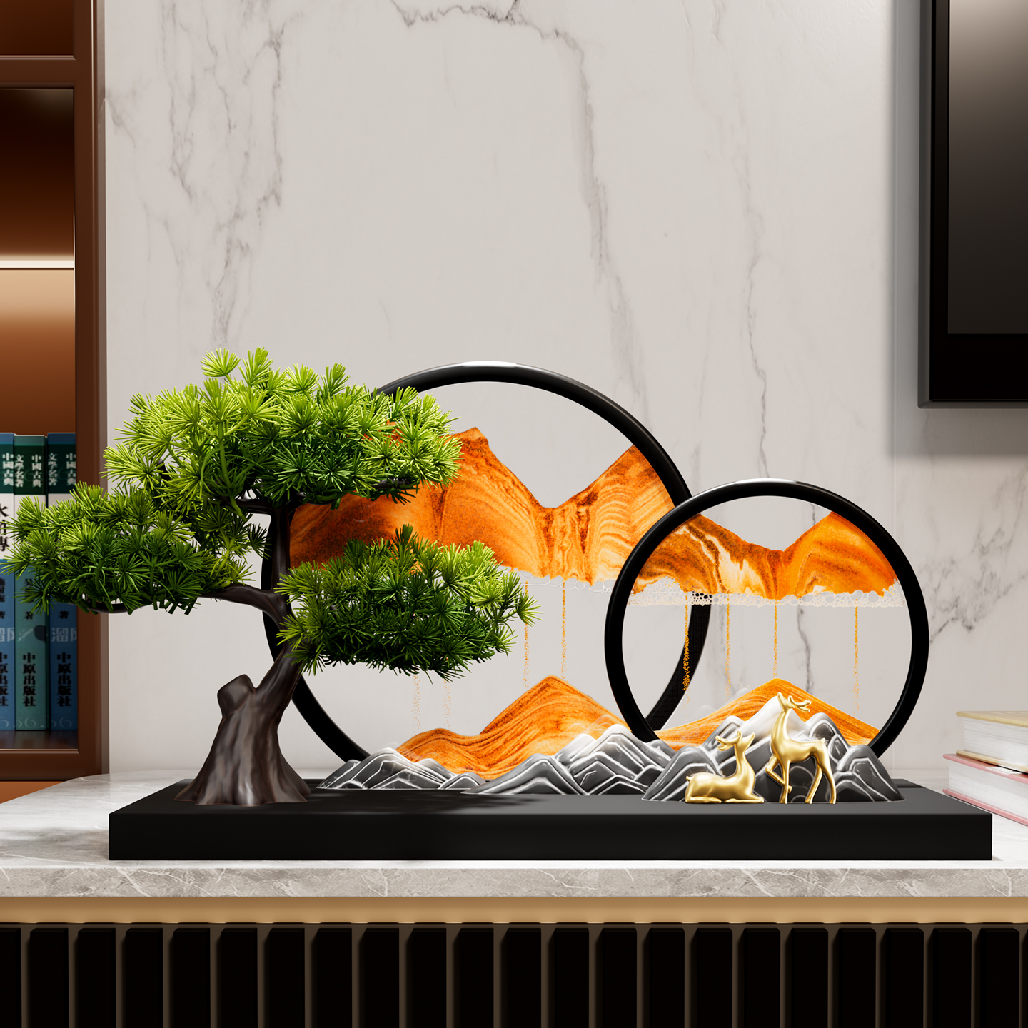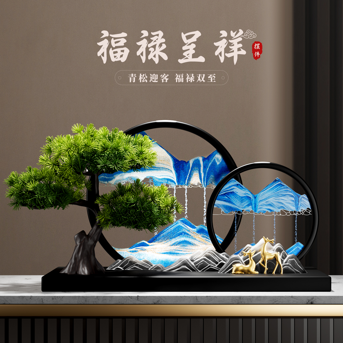 迎客松流沙画摆件办公室领导高档新中式客厅玄关电视柜装饰工艺品