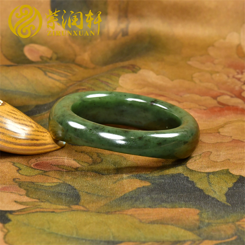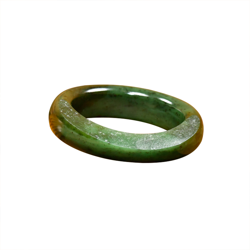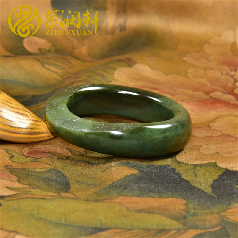 紫润轩新疆和田玉碧玉手镯56 5MM籽料糖皮菠菜绿满皮随形宽版收藏