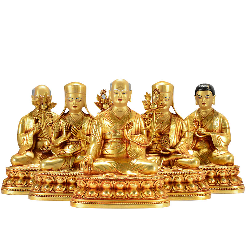 《萨迦五祖》家用铜鎏金居家桌面萨迦派五尊铜像摆件一套7寸