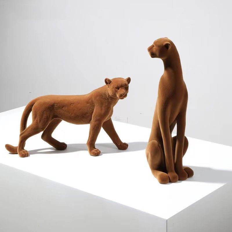 简约现代植绒猎豹子摆件家居客厅创意摆设样板间售楼处软装饰品