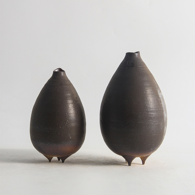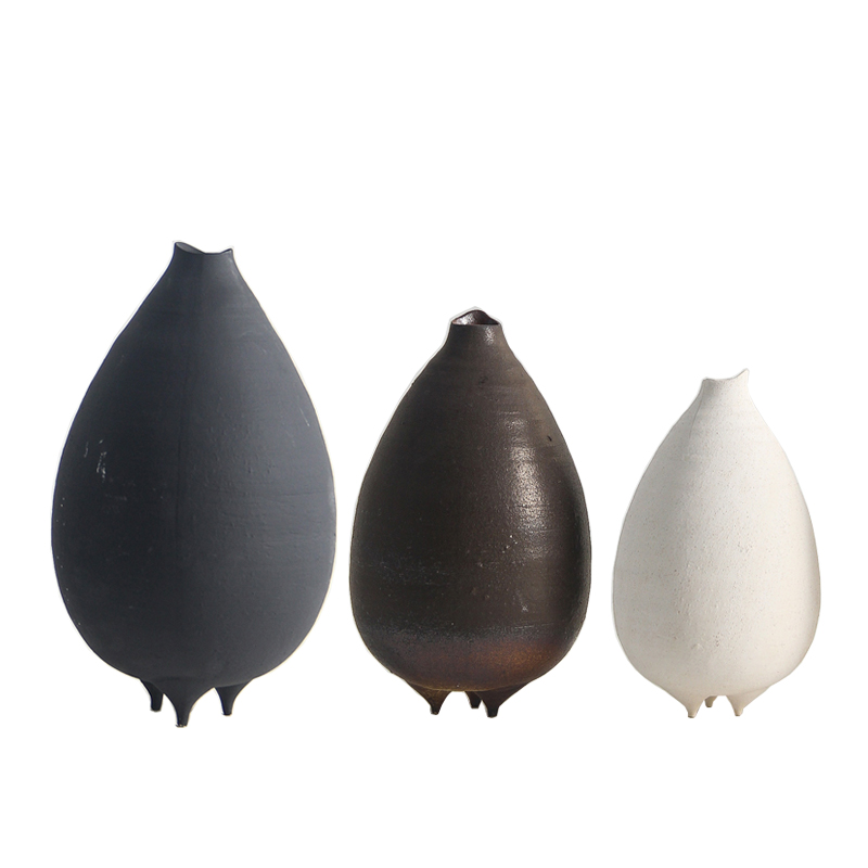 新中式简约复古设计师三脚小口陶瓷花器摆件样板间酒店花瓶装饰品