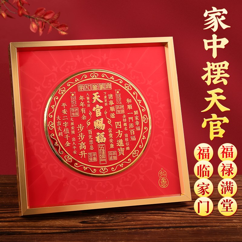 天官赐福摆件金属摆台客厅玄关办公室装饰画乔迁新居礼品喜庆摆台