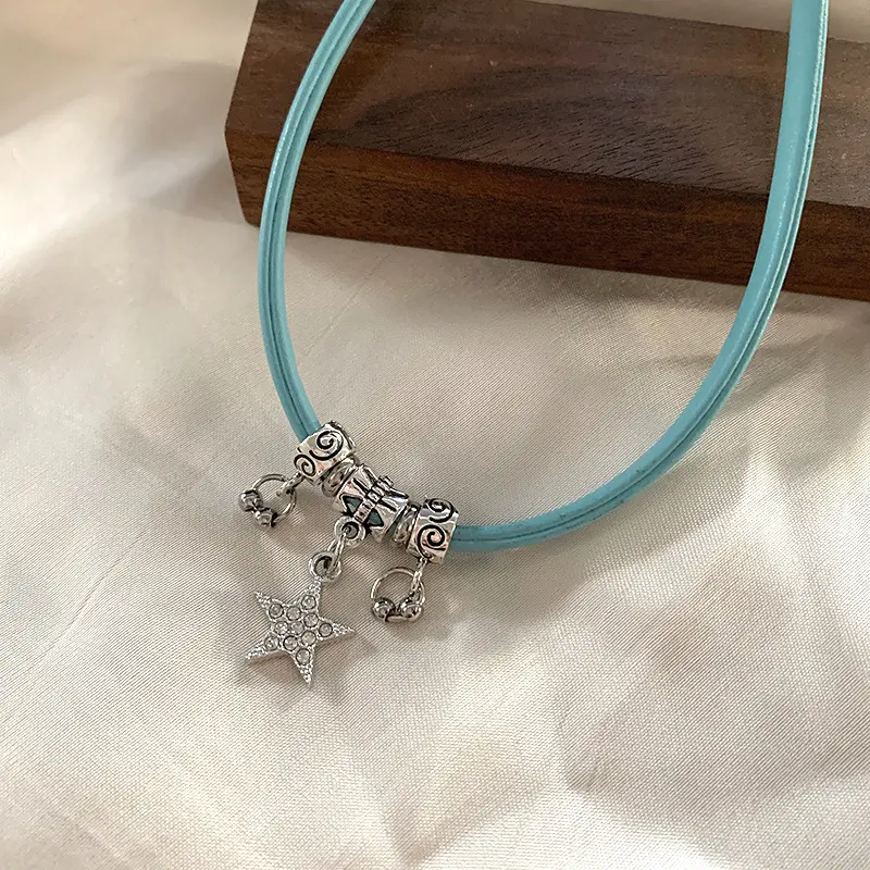 甜酷ins蓝色绳搭配星星锆石吊坠颈链冷淡风高级感百搭锁骨链
