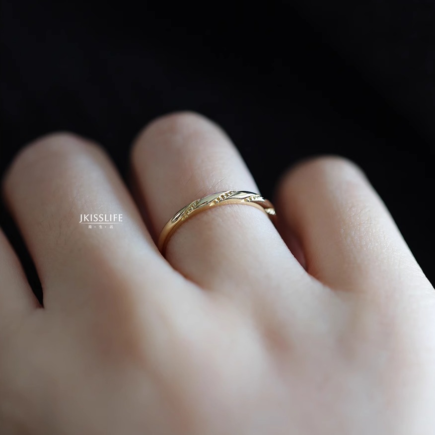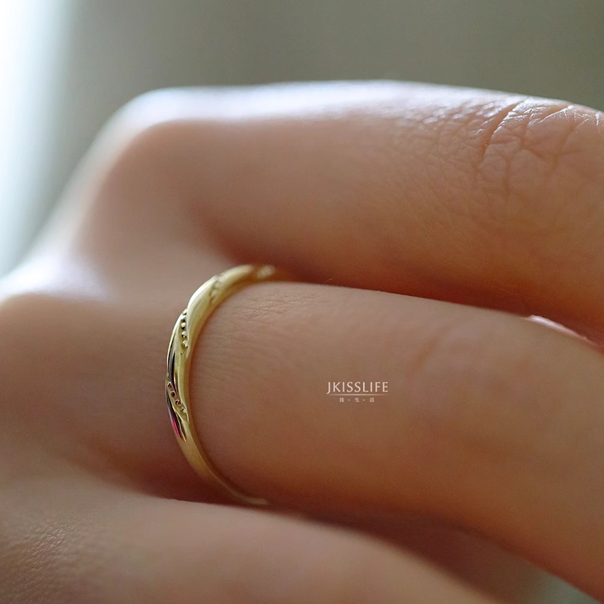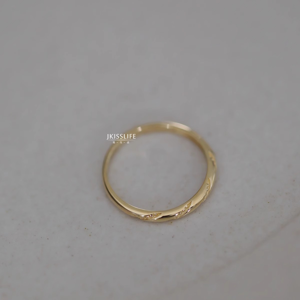 9K黄金 法式图腾 精致花纹素金K金戒指 简约气质素金指环 设计感