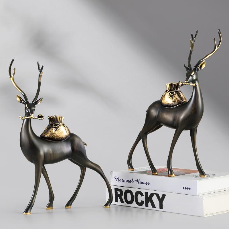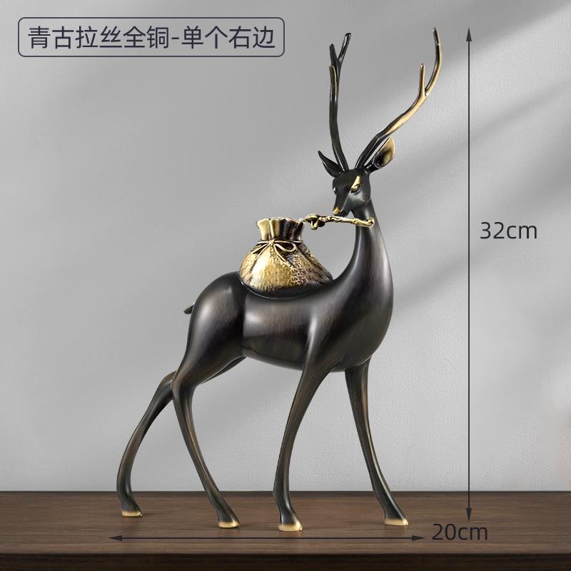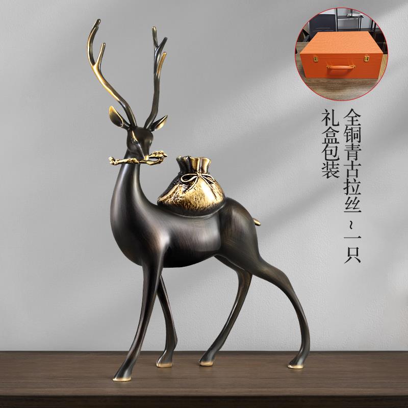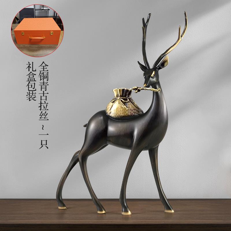 高档《财鹿亨》招财铜鹿家通居装饰品客厅关玄办公室奢桌面轻高档