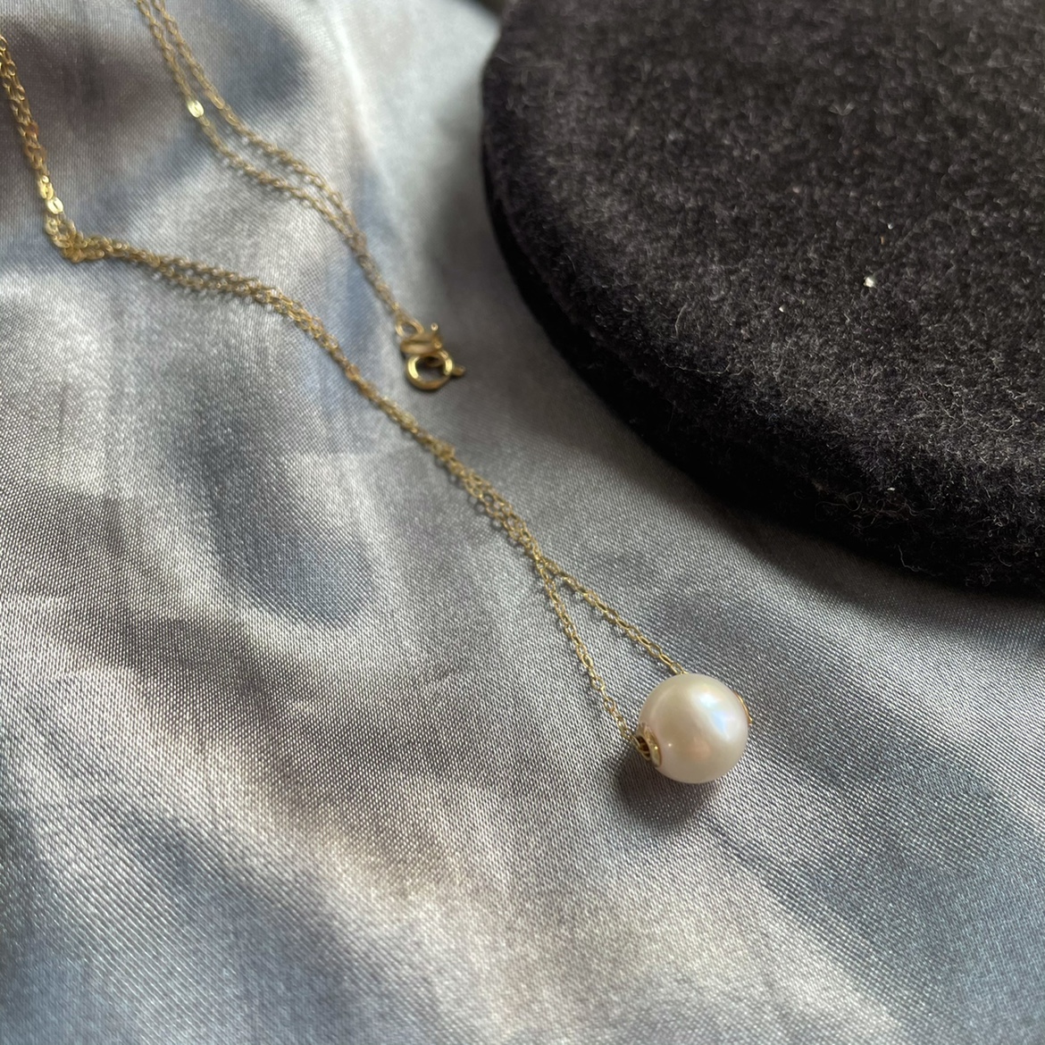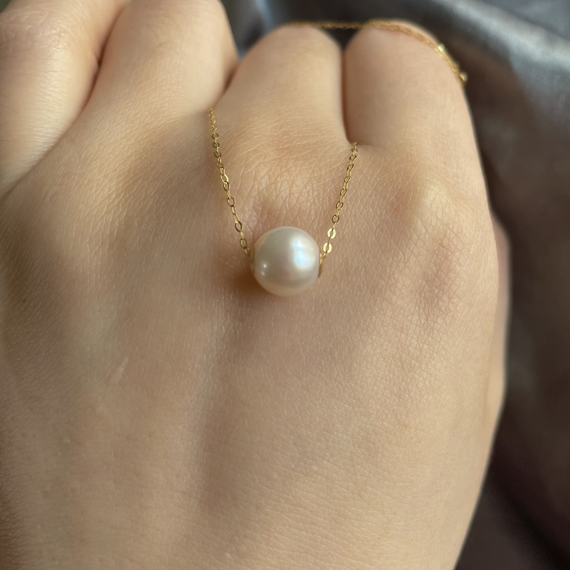 醒走 天然珍珠18K金锁骨链路路通单珠8mm项链