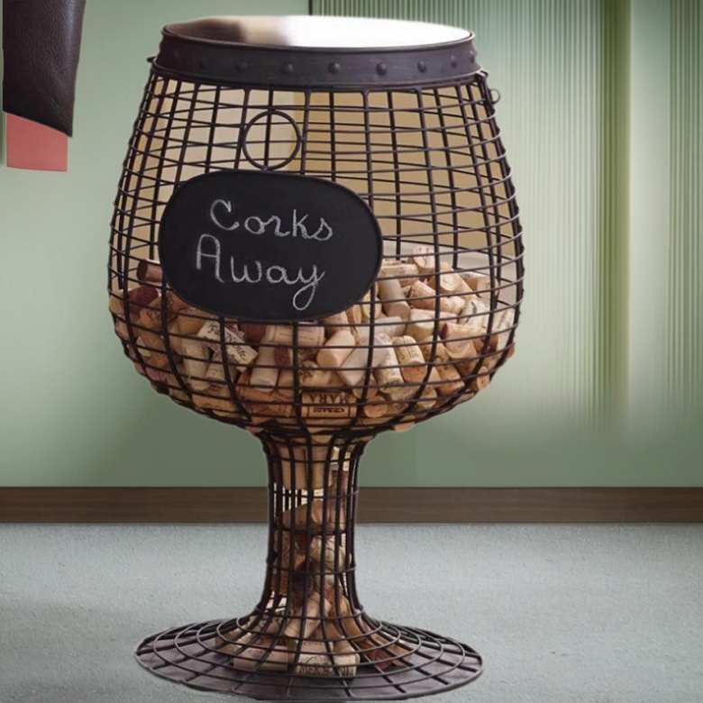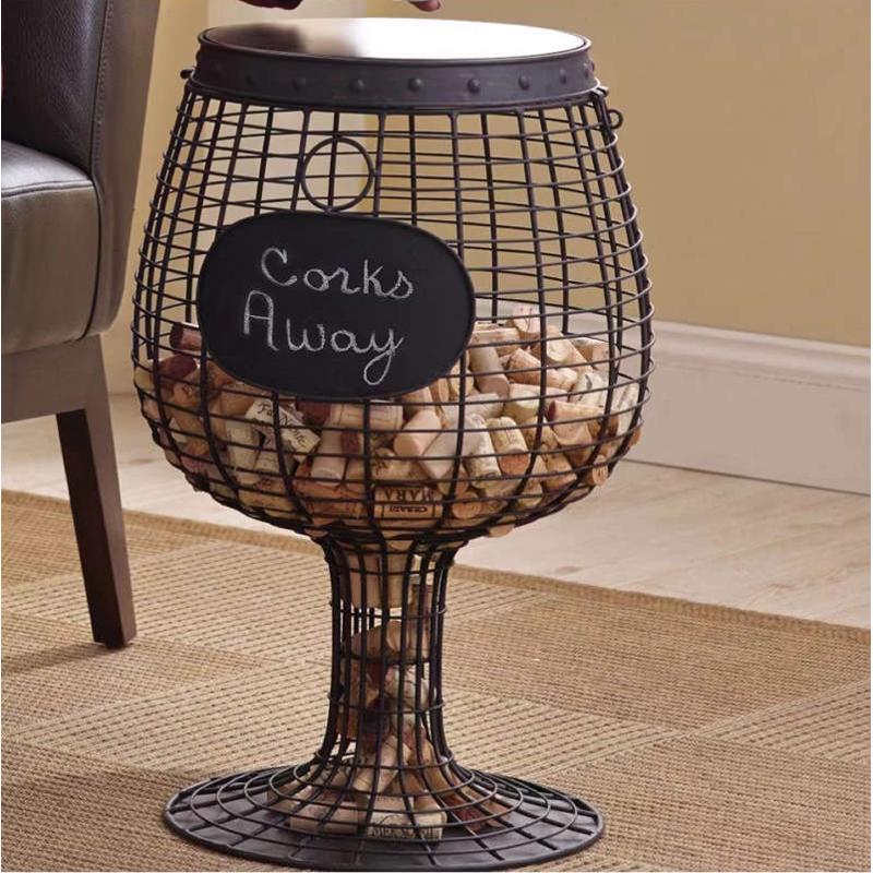 欧式创意金属铁艺高脚红酒杯摆件酒桶摆饰红酒塞收藏架边几咖啡桌
