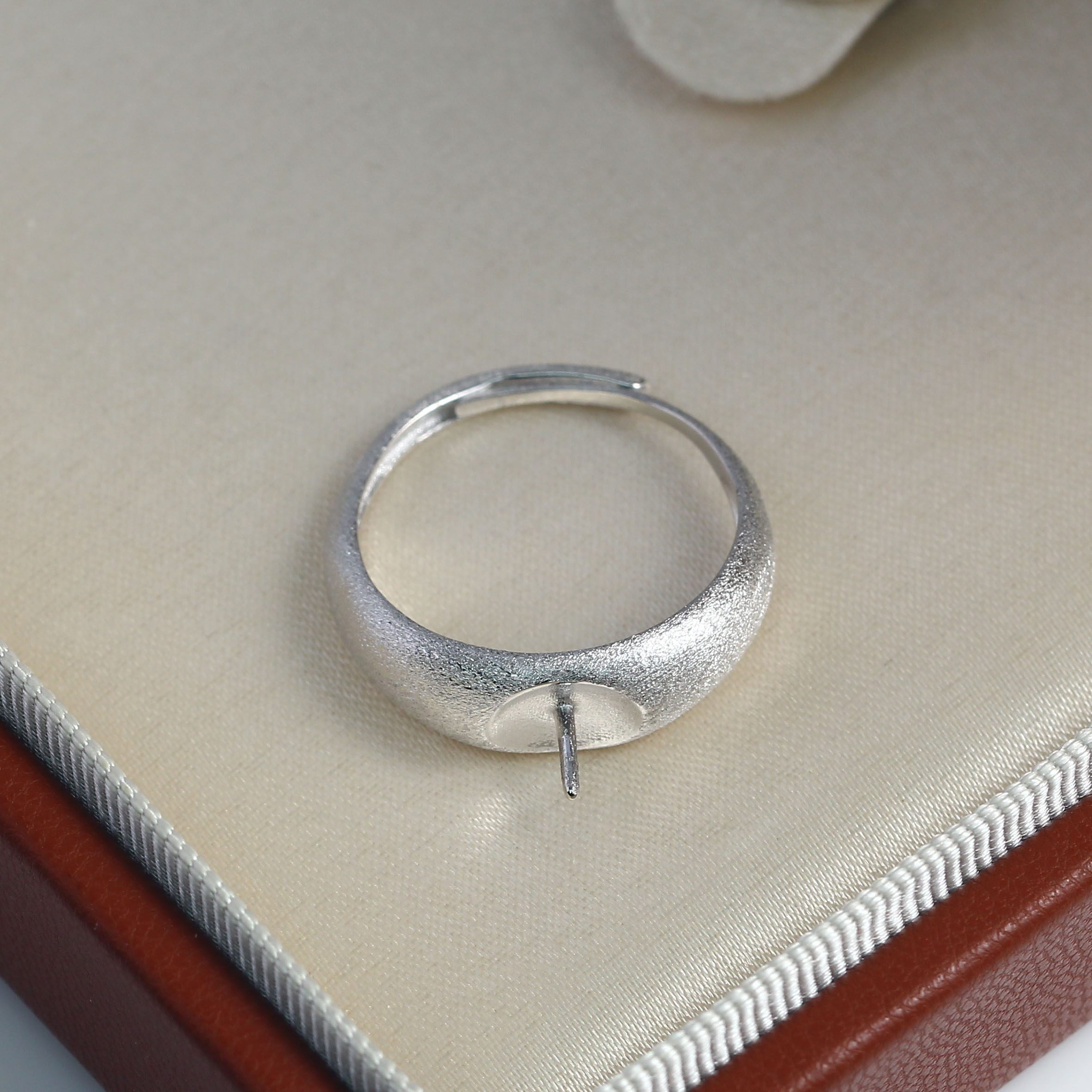 DIY珍珠配件新款S925纯银时尚简约磨砂戒指空托轻奢精致开口调节
