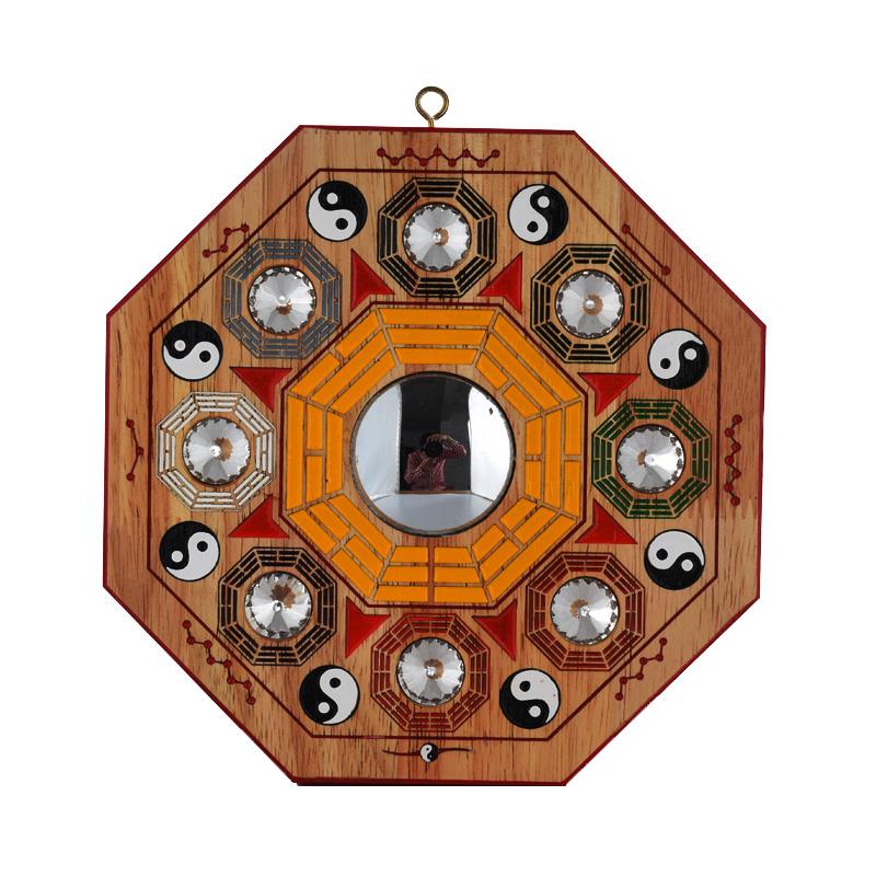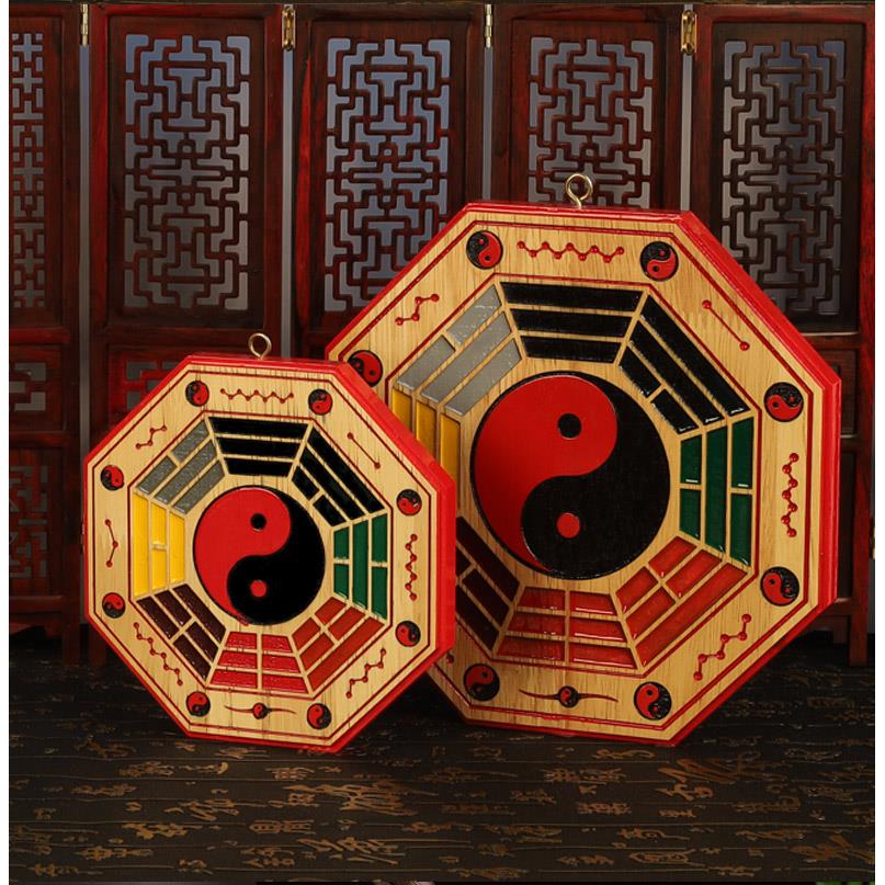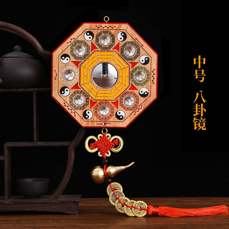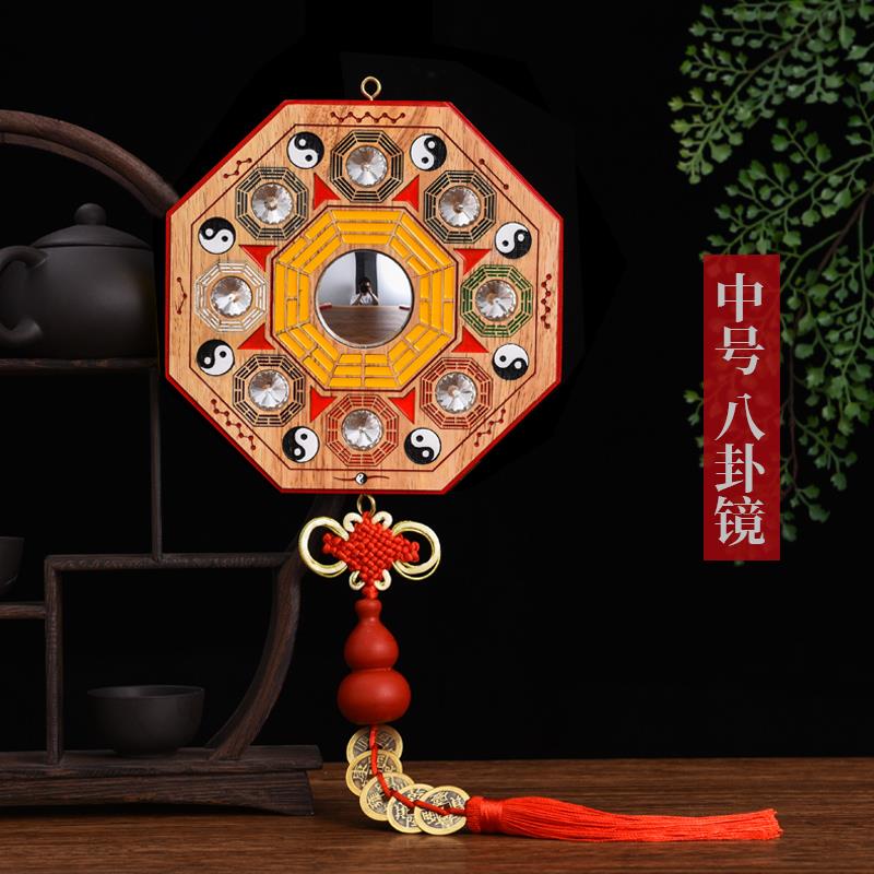 桃木雕刻八卦镜凸镜彩绘九宫八卦镜家用门口挂件凹凸平面摆件