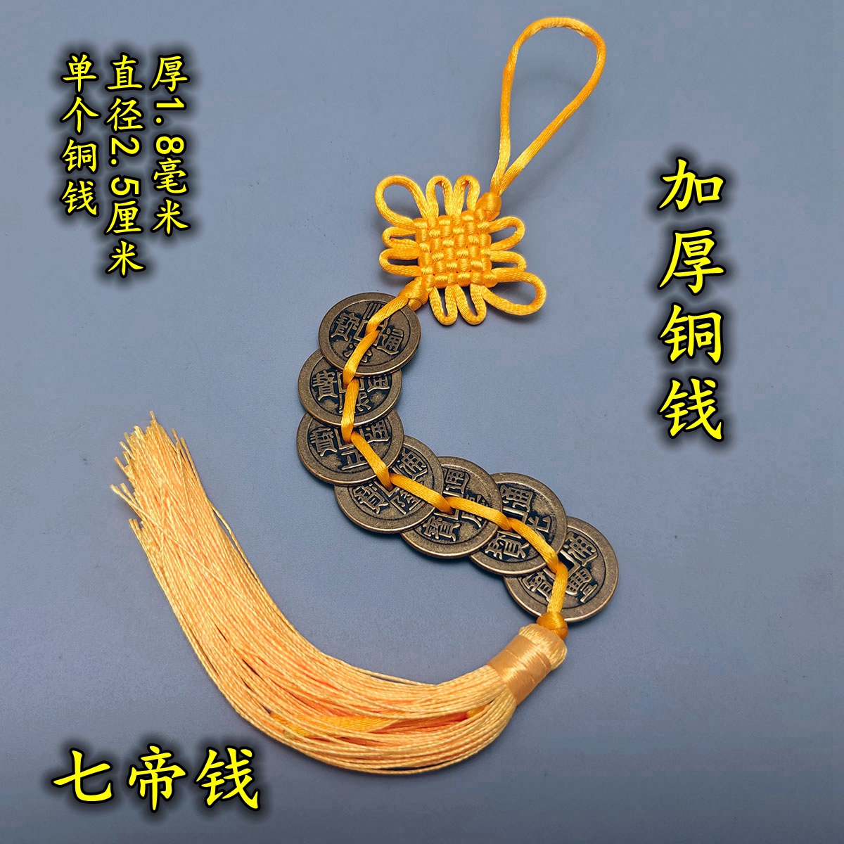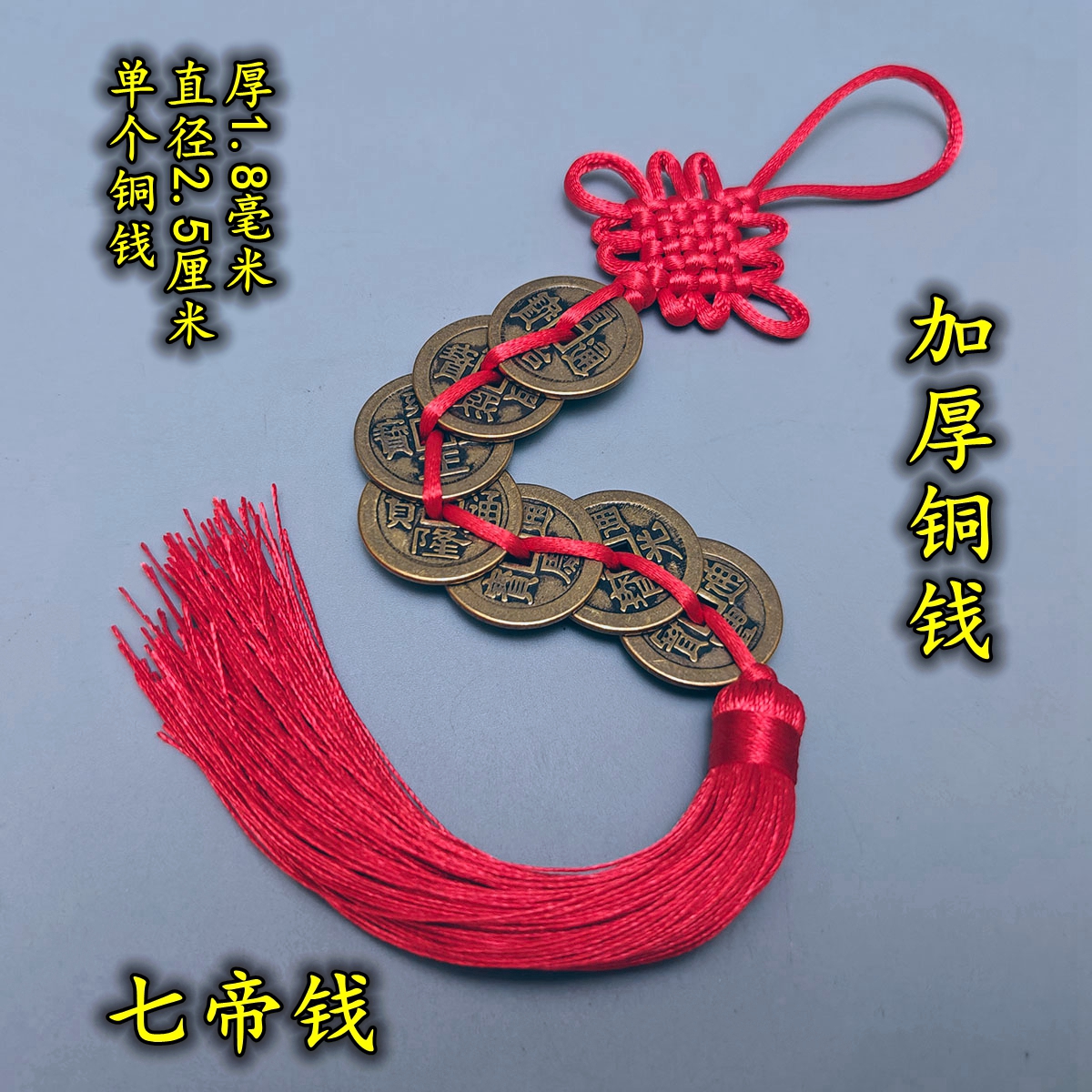 七帝钱红绳中国结摆聚财北斗七星图真铜风水铜钱流水居家挂件摆件