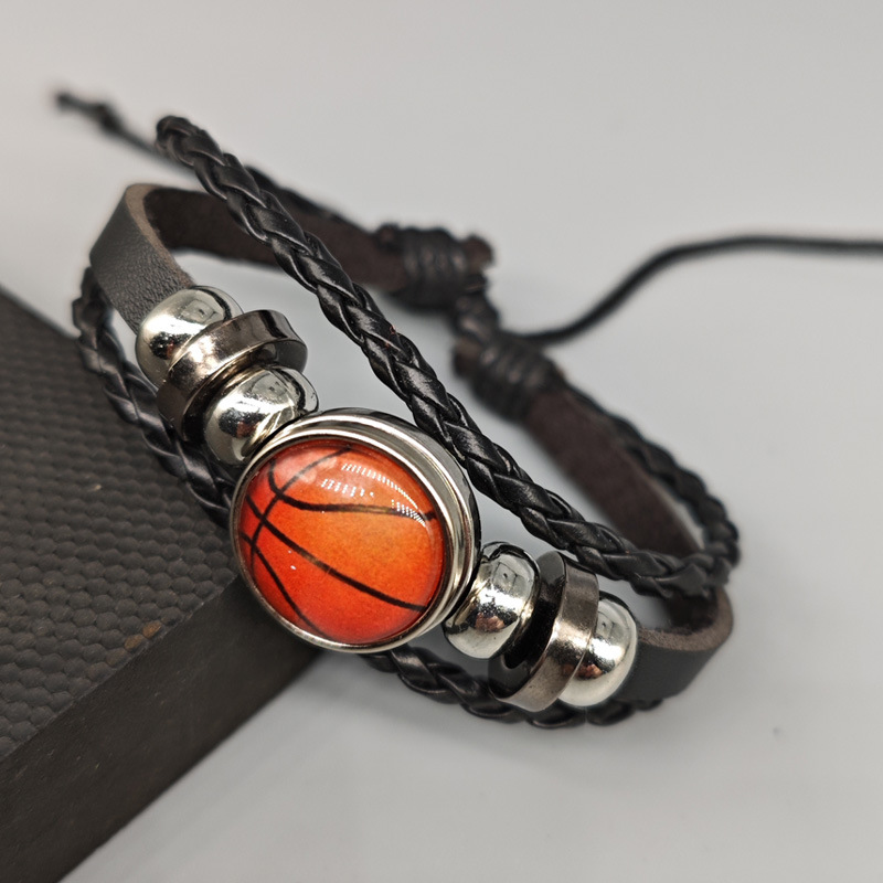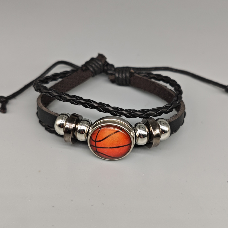 欧美时尚流行饰品个性串珠篮球比赛球迷周边皮革手链批发运动手环