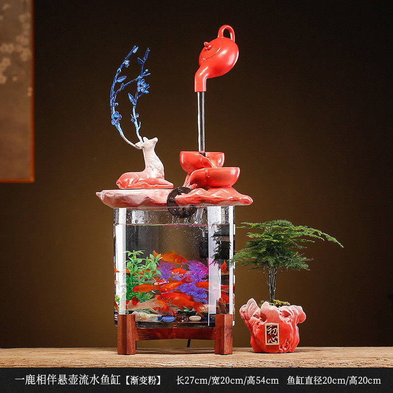 中式流水招财鱼缸摆件办公室客厅循环水喷泉加湿乔迁新居开业礼品