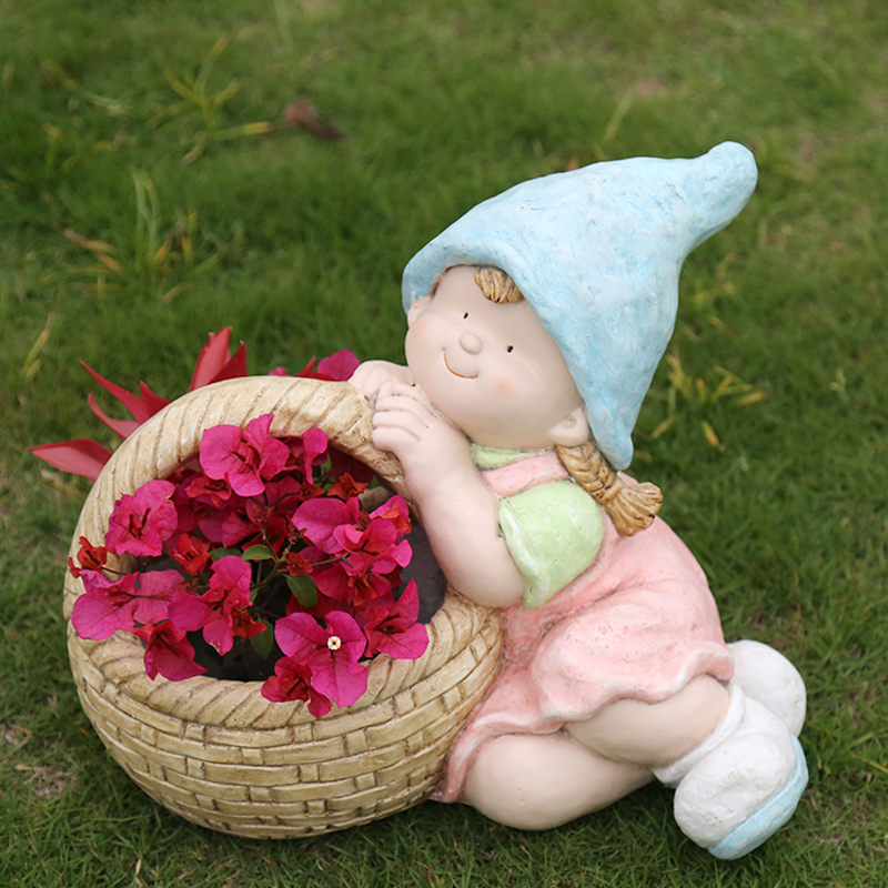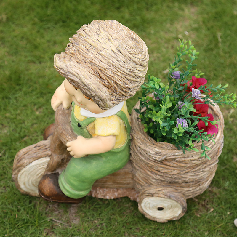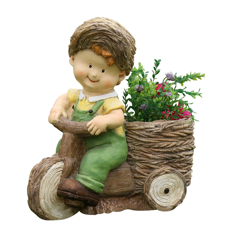 户外花园庭院装饰品摆件别墅卡通创意人物树脂男女孩花缸花盆摆设