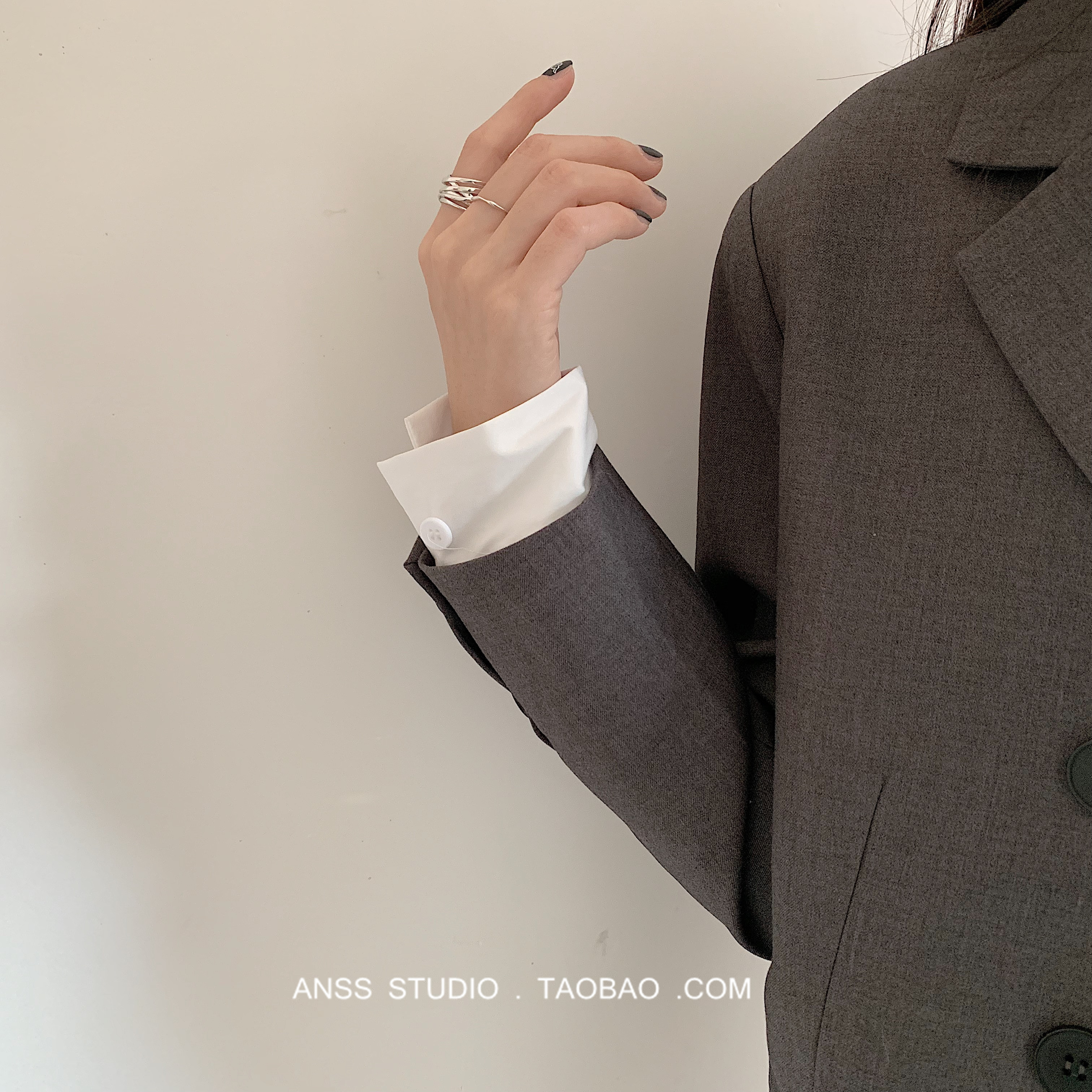 【ANSS】925纯银 INS极简冷淡风 多层缠绕线条开口戒指女 不规则