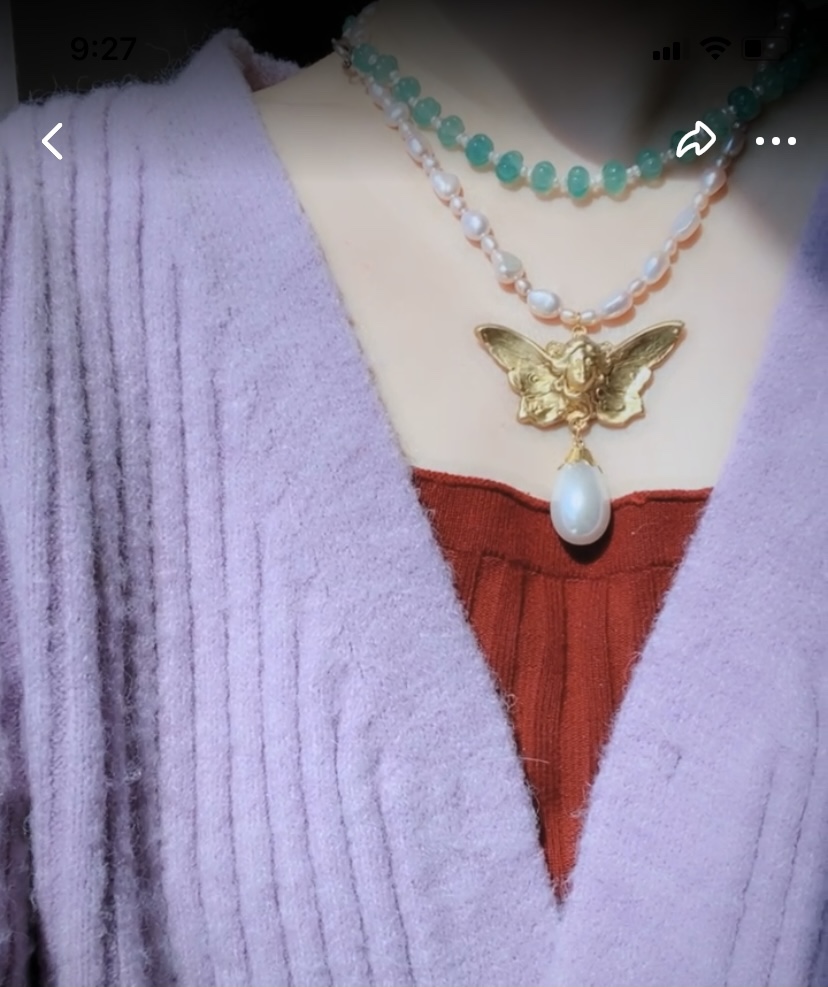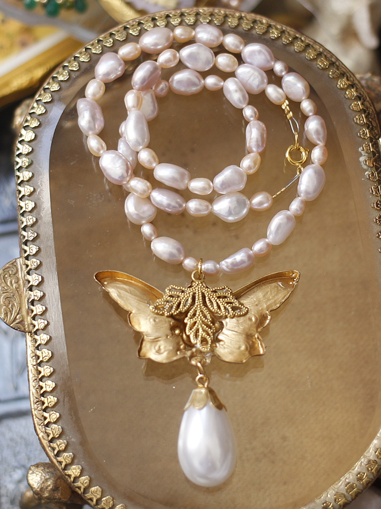 如意|216原创设计天使欧美中古老黄铜askew london风淡水珍珠项链
