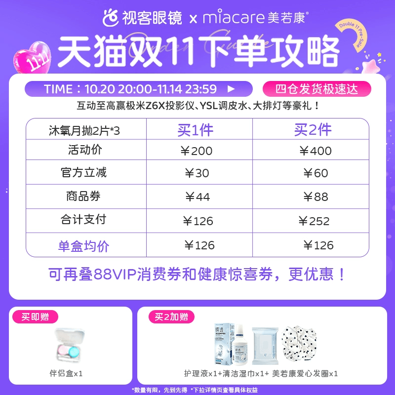 美若康高透氧硅水凝胶隐形眼镜沐氧月抛2片*3盒