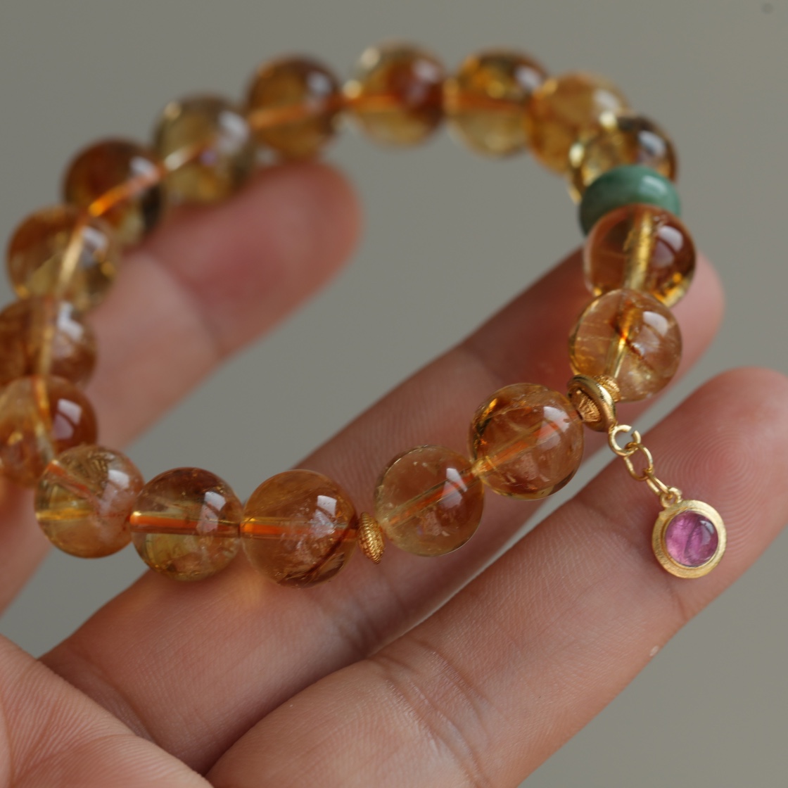 高端定制天然黄水晶手链搭配翡翠转环碧玺吊坠超美的成色和晶体
