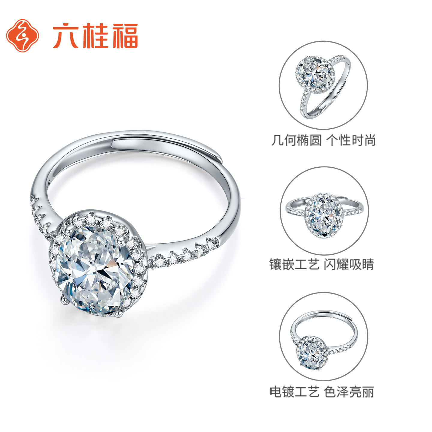 六桂福S925纯银镶锆石戒指一克拉钻戒求婚订婚结婚指环送礼