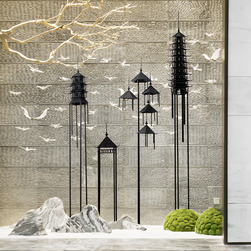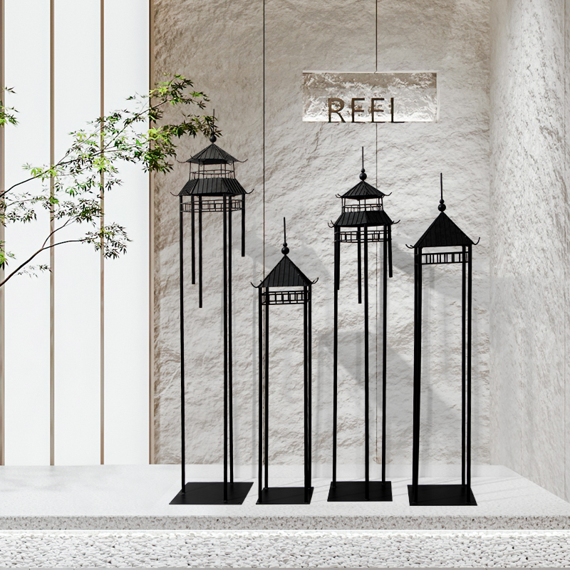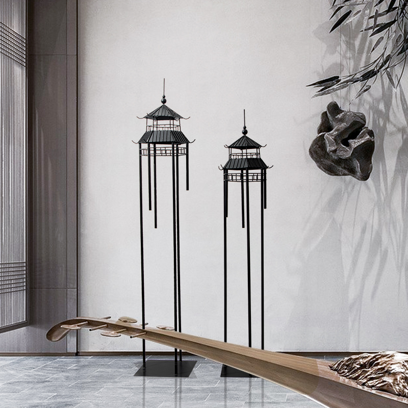初夏大型工艺品铁艺凉亭落地雕塑摆件新中式酒店售楼庭院干景装饰