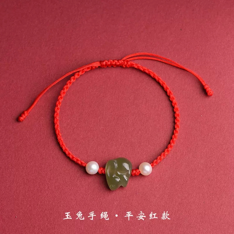 和田玉坠男女款儿童挂件青白玉十二生肖兔挂坠珍珠手链三合吊坠