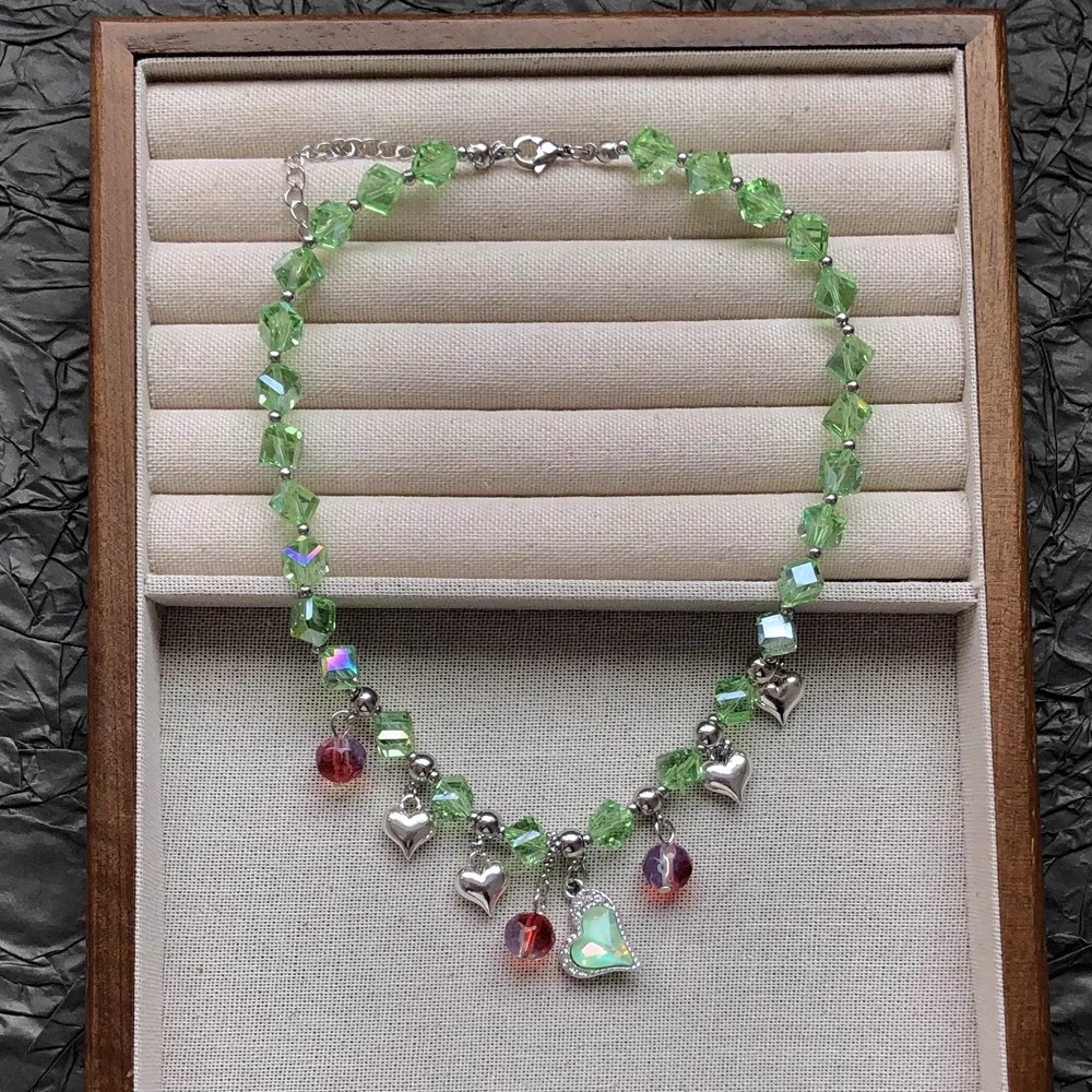 春夏季薄荷绿色水晶串珠爱心项链女流苏镶钻设计感锁骨链精致颈链