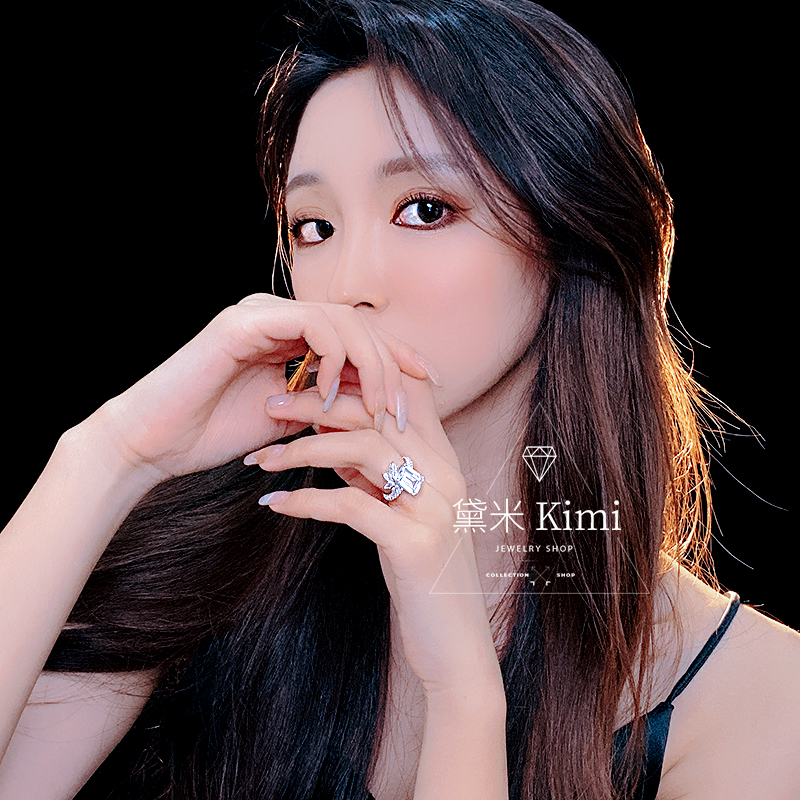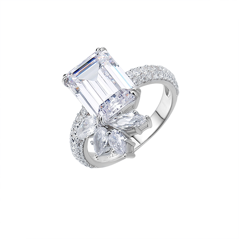 高级感仿真进口925纯银 高碳钻钻石冰糖戒指女 祖母绿切工 时尚女