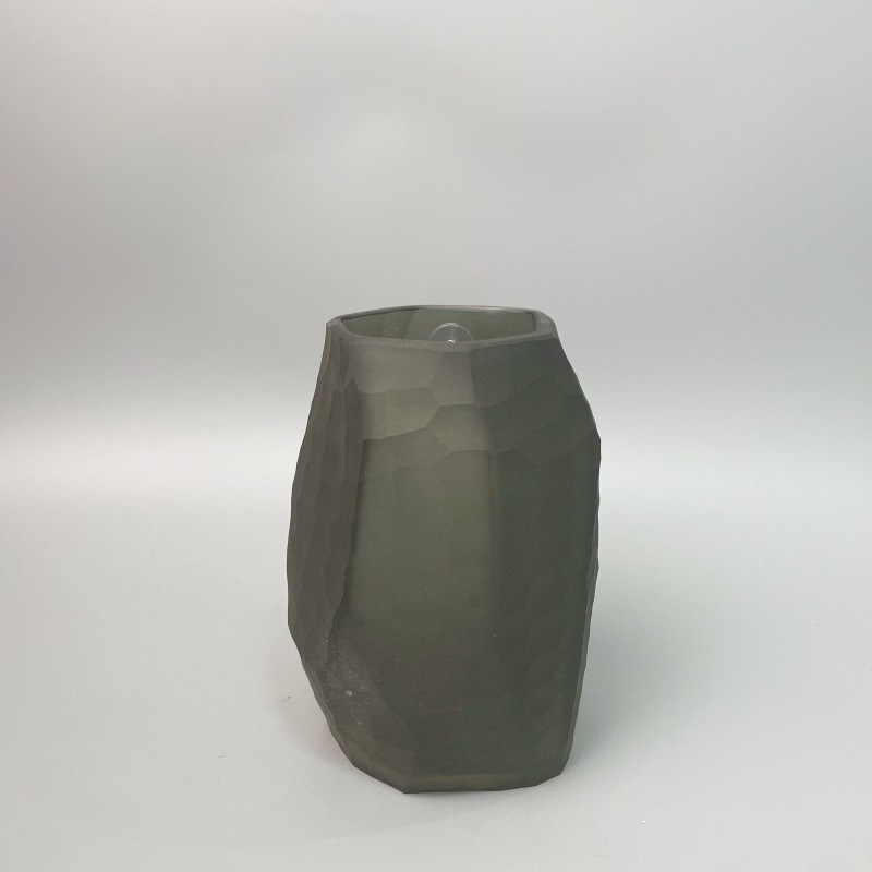 磨灰色磨砂几何玻璃花瓶高级感异形琉璃刻现代简约水培插花器摆件