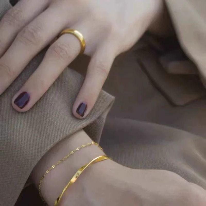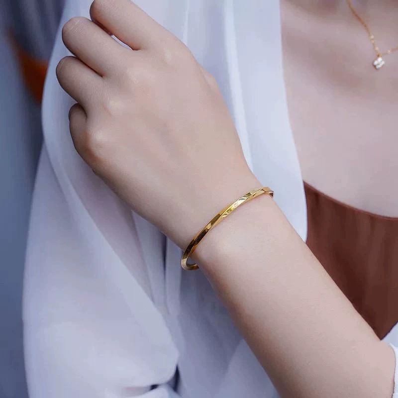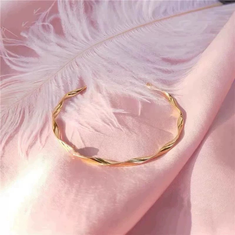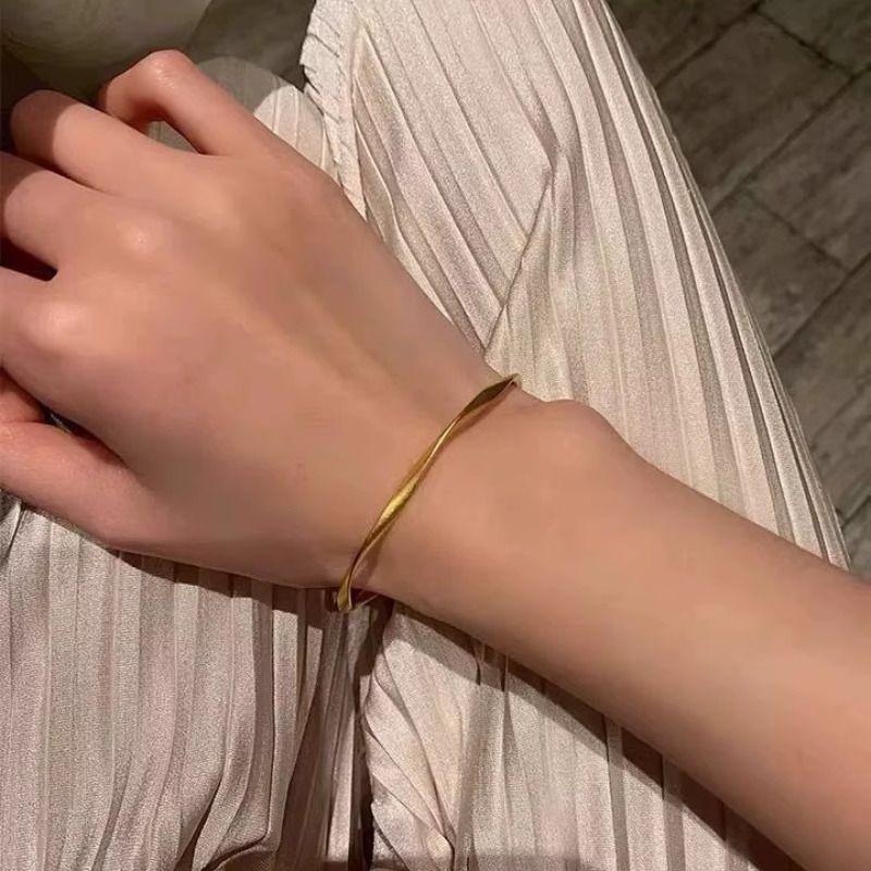 不掉色ins极简冷淡风纽纹开口手镯女显白显气质手环韩国森系手链