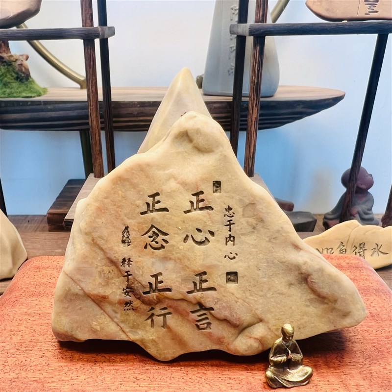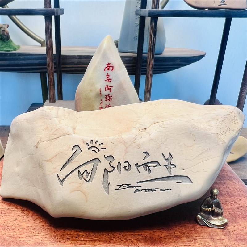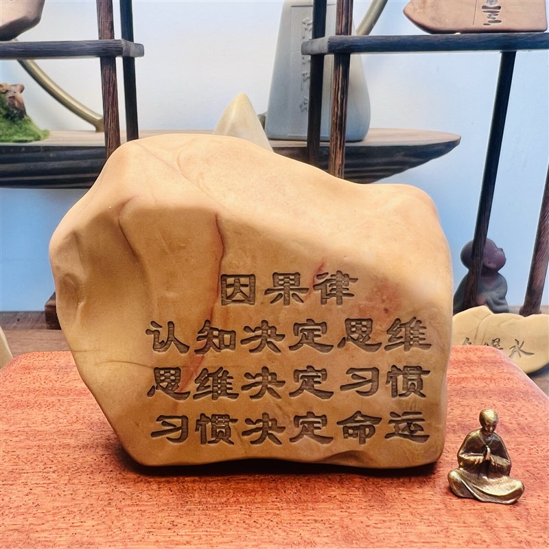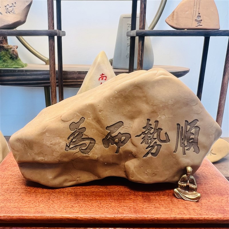 天然戈壁泥石真石头刻字办公桌面摆件花盆鱼缸造景工艺品礼品