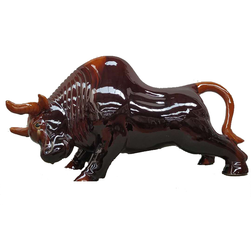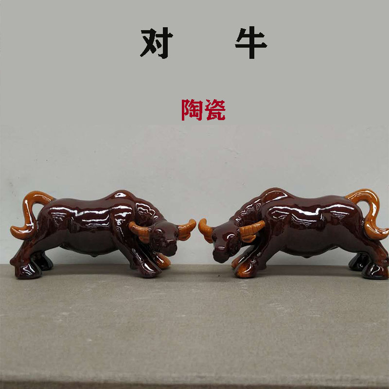 陶瓷水牛摆件唐三彩生肖牛工艺品家具装饰客厅办公室玄关风水摆件