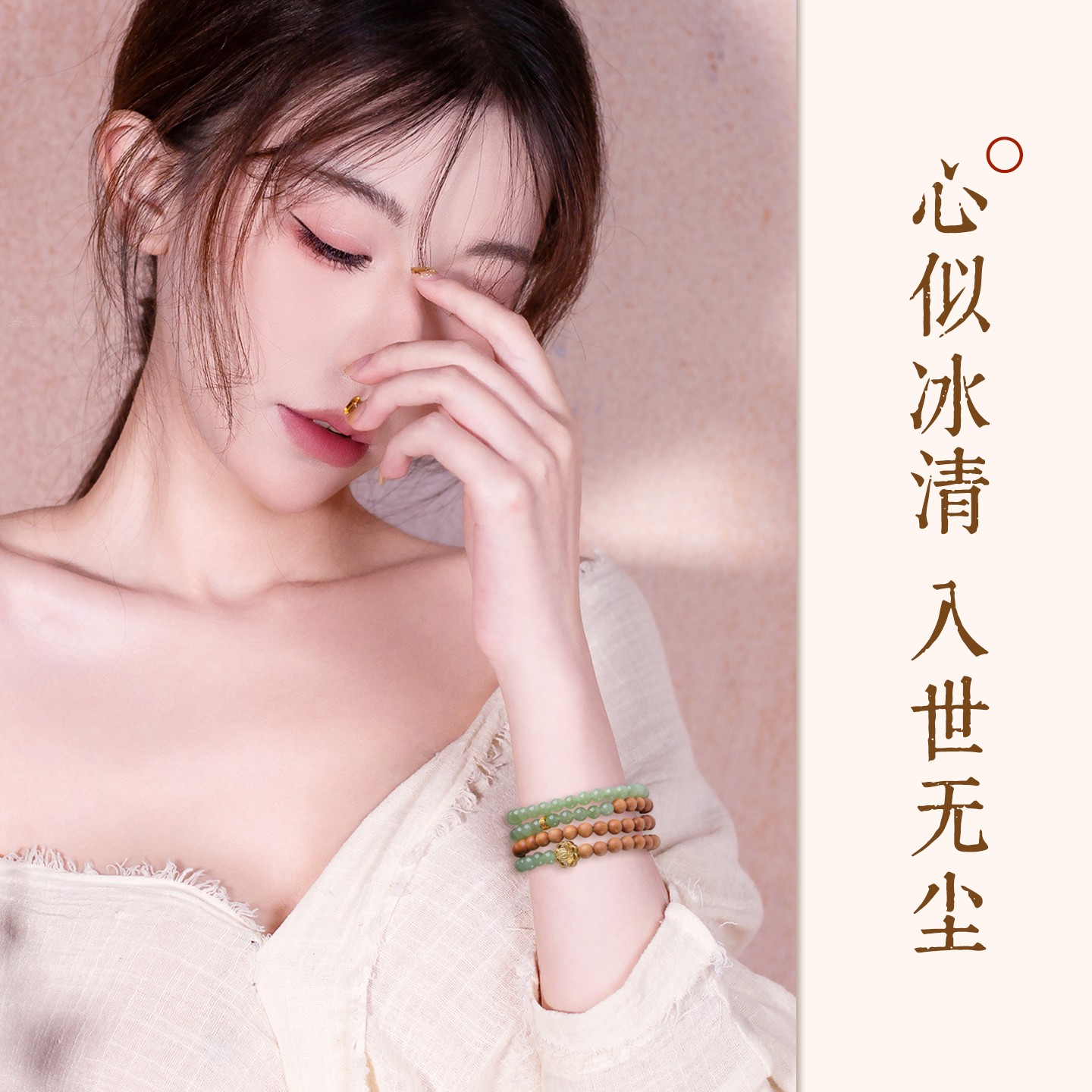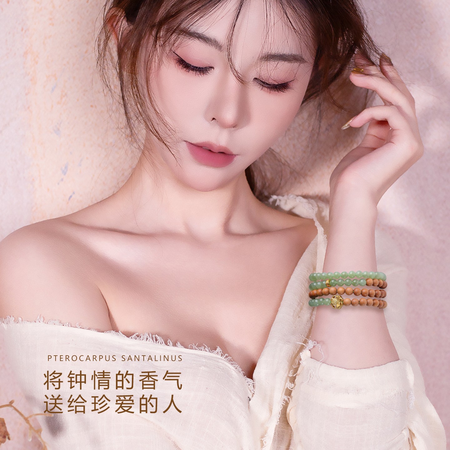 若慕【岁华莲年】天然和田玉手串檀香木木质佛珠多圈国风手链莲花
