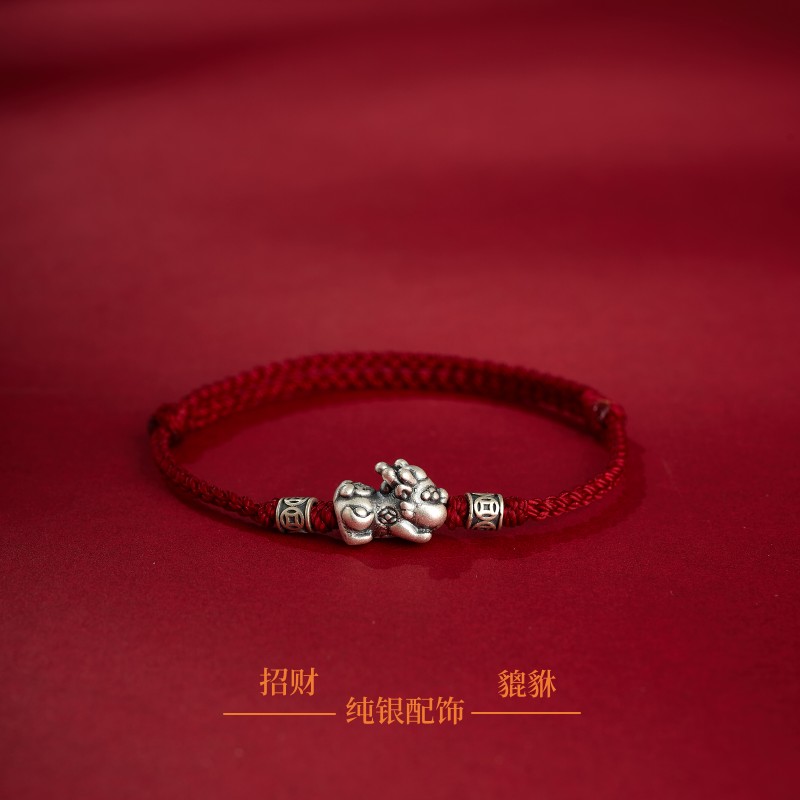 999纯银手链马上有钱花手绳属马本命年招财平安好运国风红绳复古