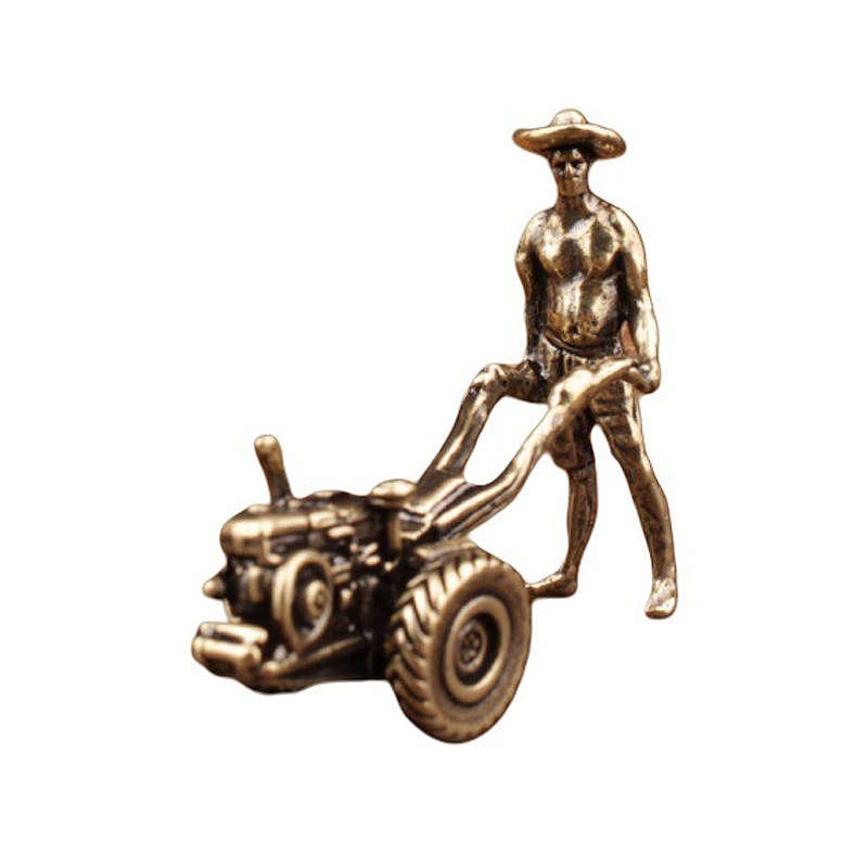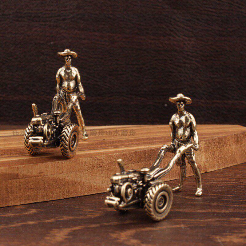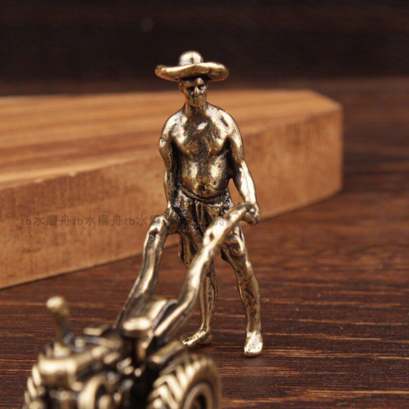 纯铜开拖拉机的农民耕耘牛耕田七十八年代农村老物件装饰品小摆件