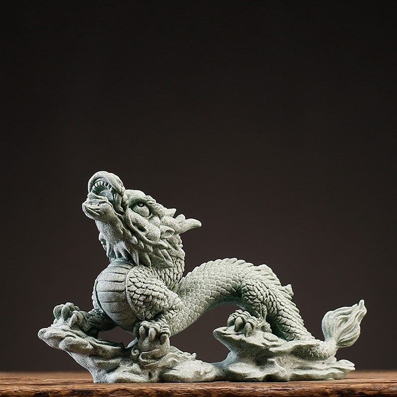 中式生肖龙书桌摆件创意家居玄关鱼缸沉水造景青砂石瑞兽神龙摆设