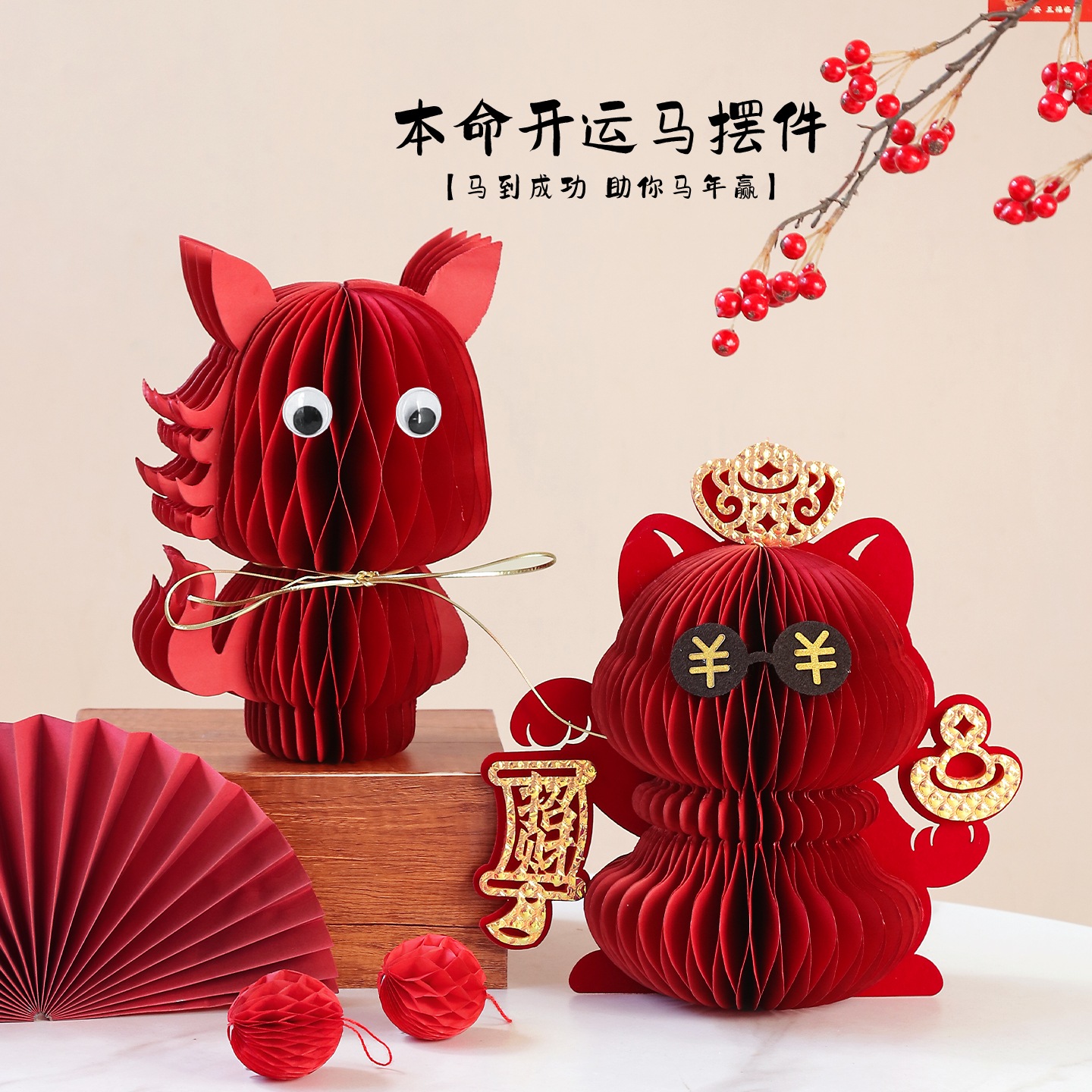 新年装饰品红色马摆件客厅桌面立体折纸2026过年氛围布置乔迁礼物