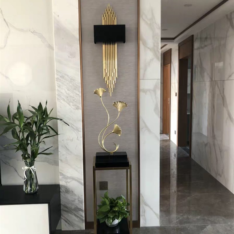纯铜银杏叶创意摆件现代轻奢客厅电视柜茶几玄关酒柜北欧式装饰品