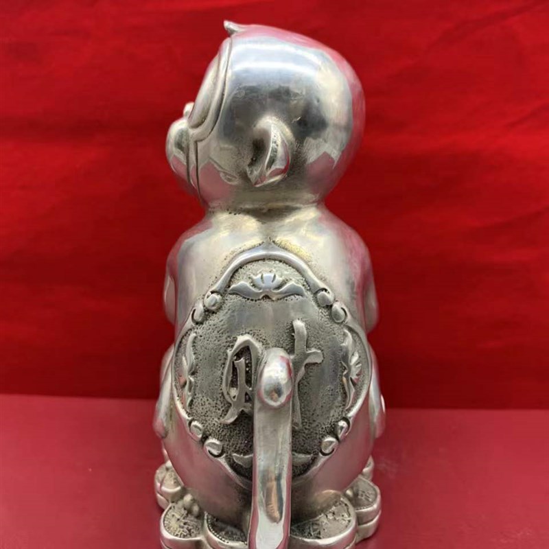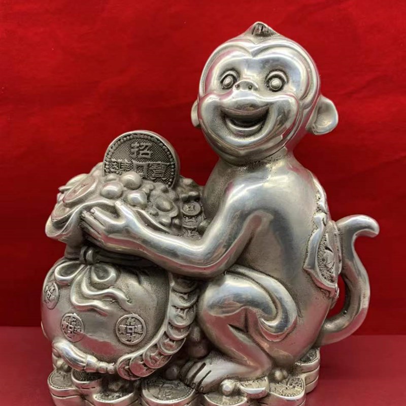 白铜猴摆件做旧鎏银招财猴生肖猴纳福吉祥居家客厅办公室桌面装饰