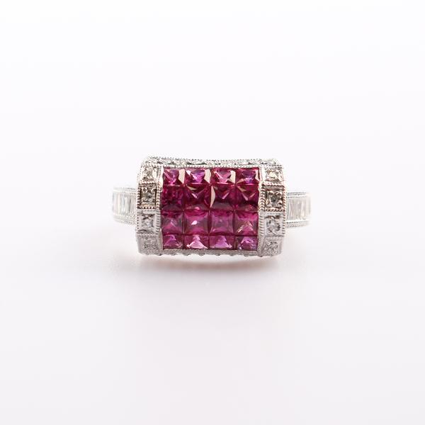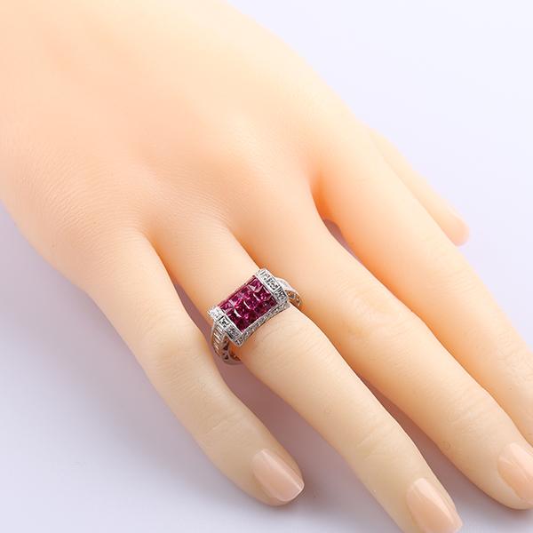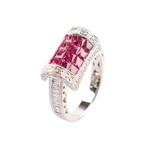 【自营】中古95新日本进口商品神秘镶嵌红宝石钻石戒指白金戒指