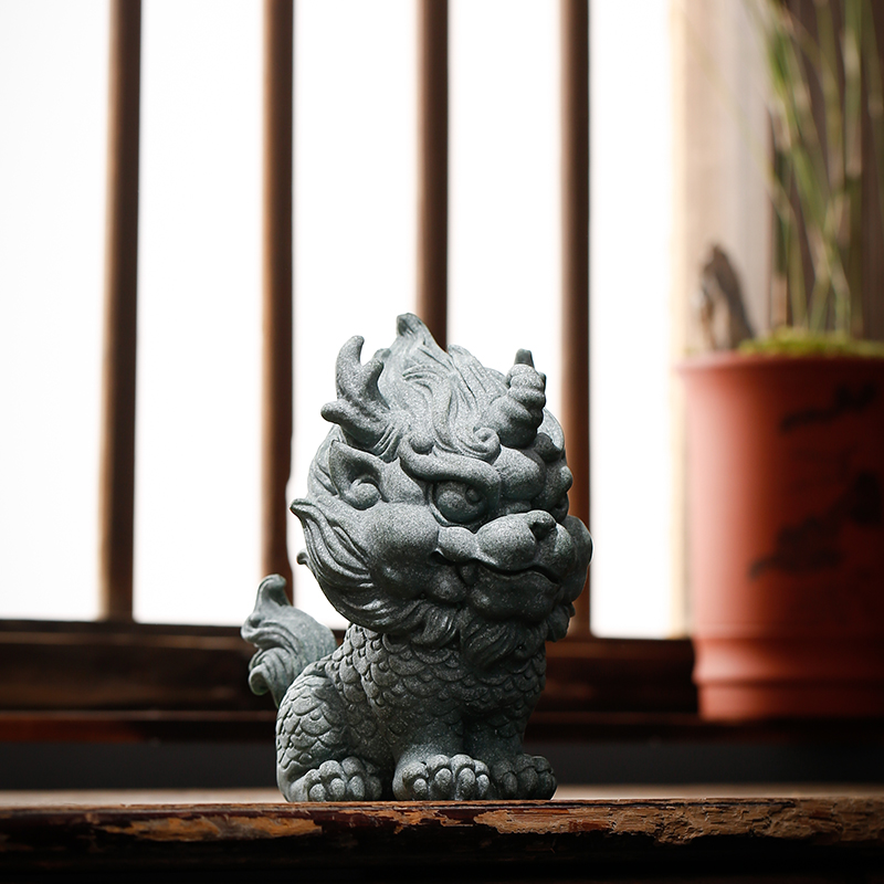 国风青砂石瑞兽麒麟摆件动物创意客厅办公室桌面鱼缸景观装饰摆设