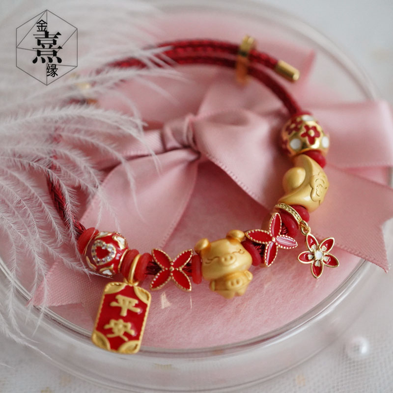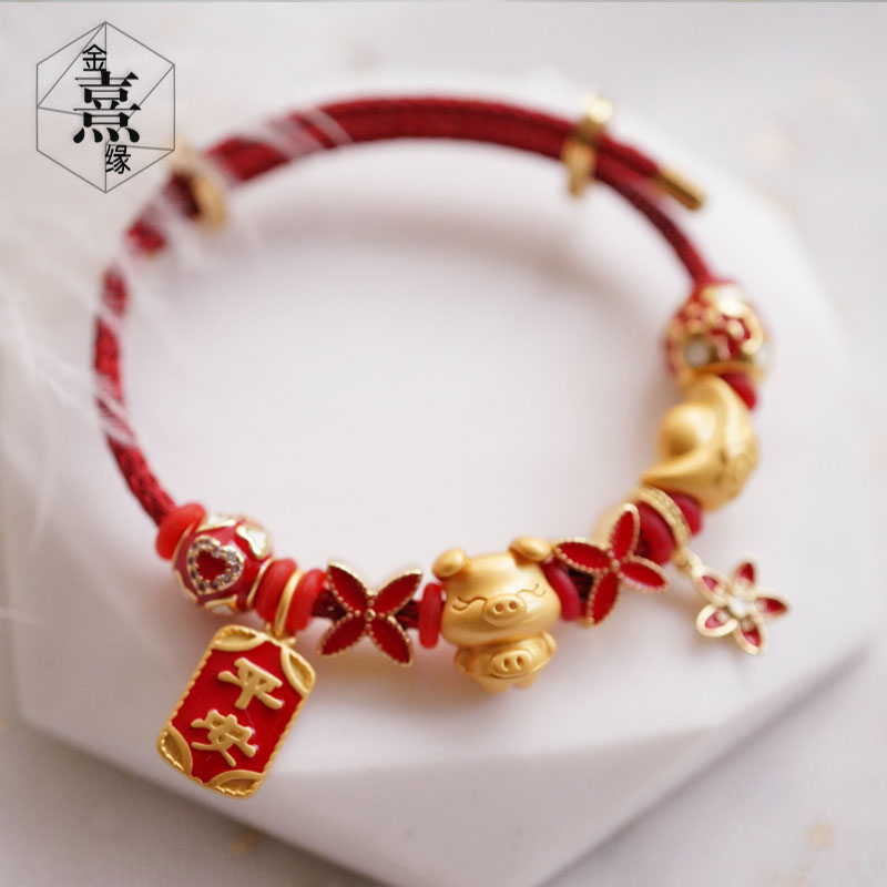 2020猪你平安红色本命年可调节红绳可穿3D硬金配饰DIY38送女友礼
