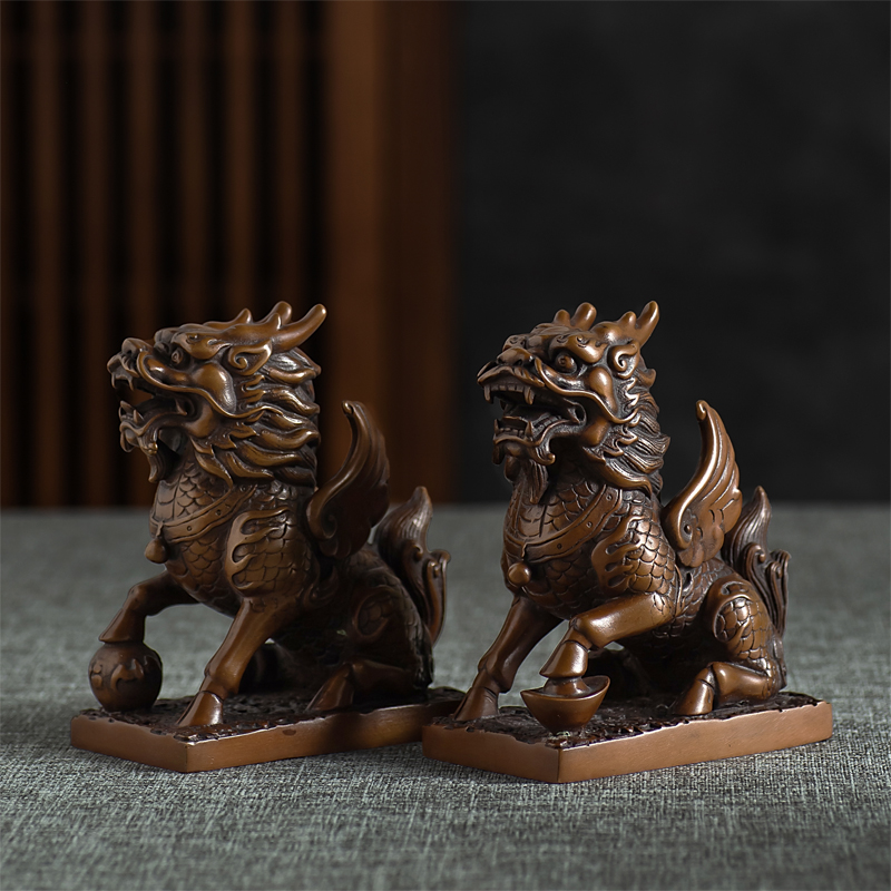 观铜紫铜财富麒麟铜摆件一对中式家居玄关酒柜镇宅吉祥物摆件礼物