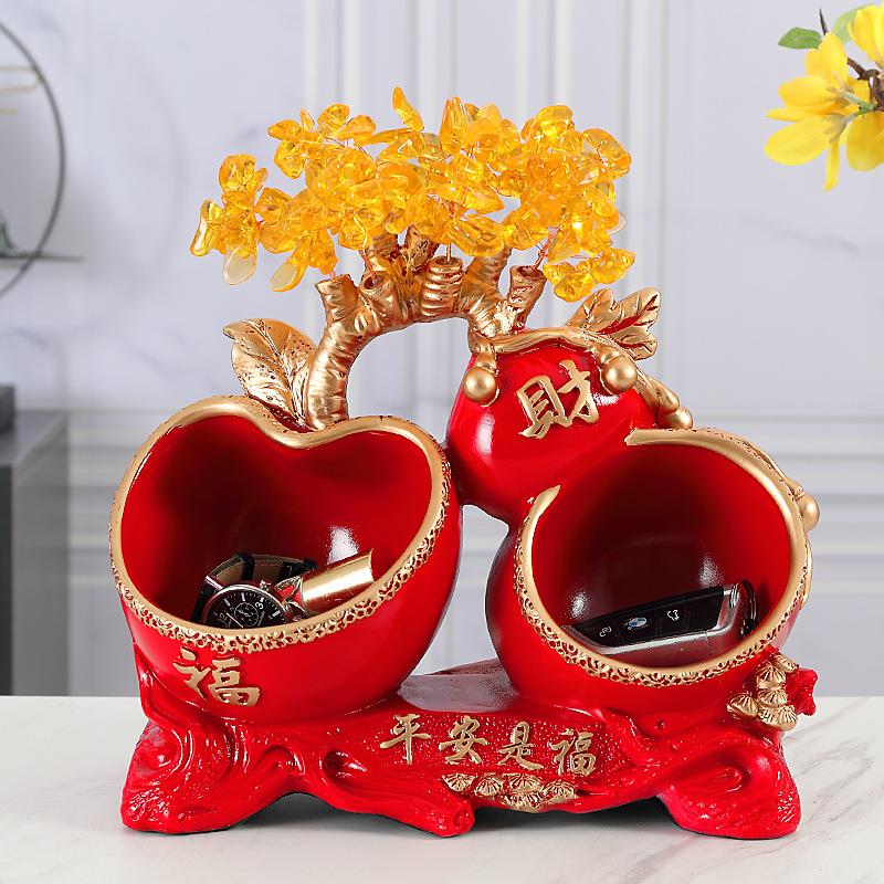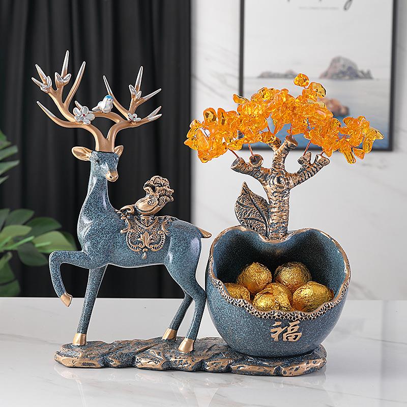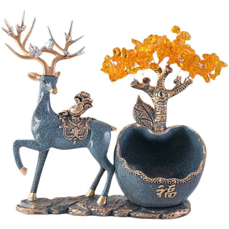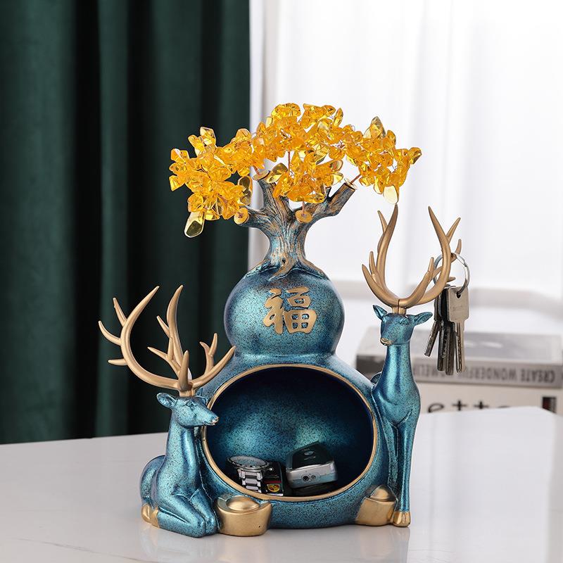 进门口鞋柜放钥匙的玄关电视柜收纳盒招财树鹿摆件新中式北欧饰品