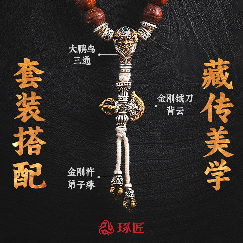 琢匠金刚杵弟子珠三通文玩配饰金刚杵银饰配件小金刚菩提手串配珠
