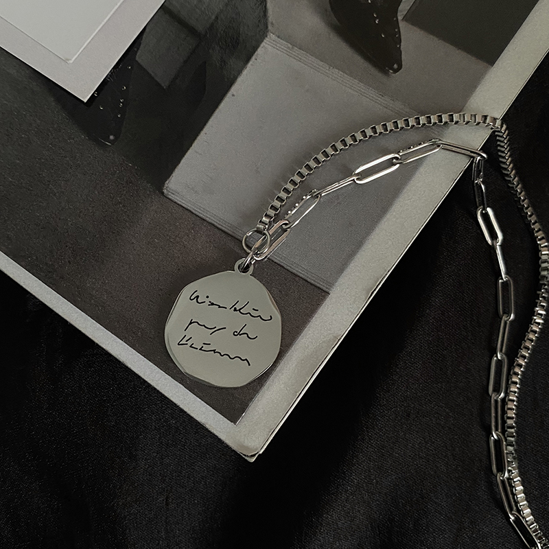 小众设计感金属圆牌吊坠项链女ins锁骨链冷淡风嘻哈链子网红配饰