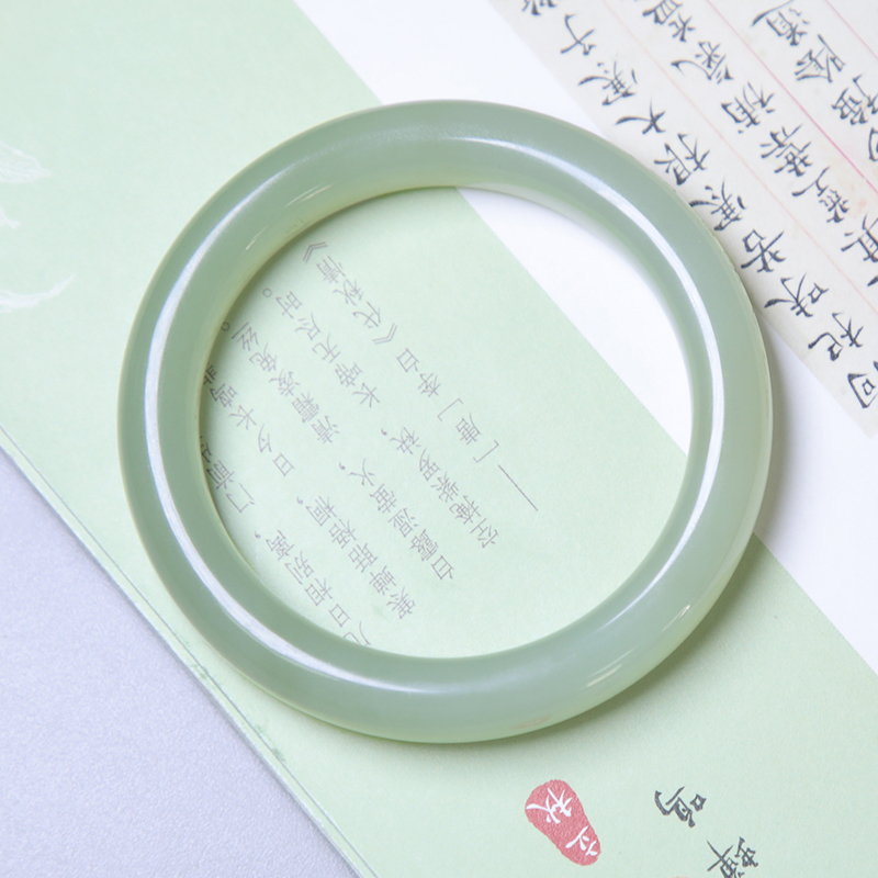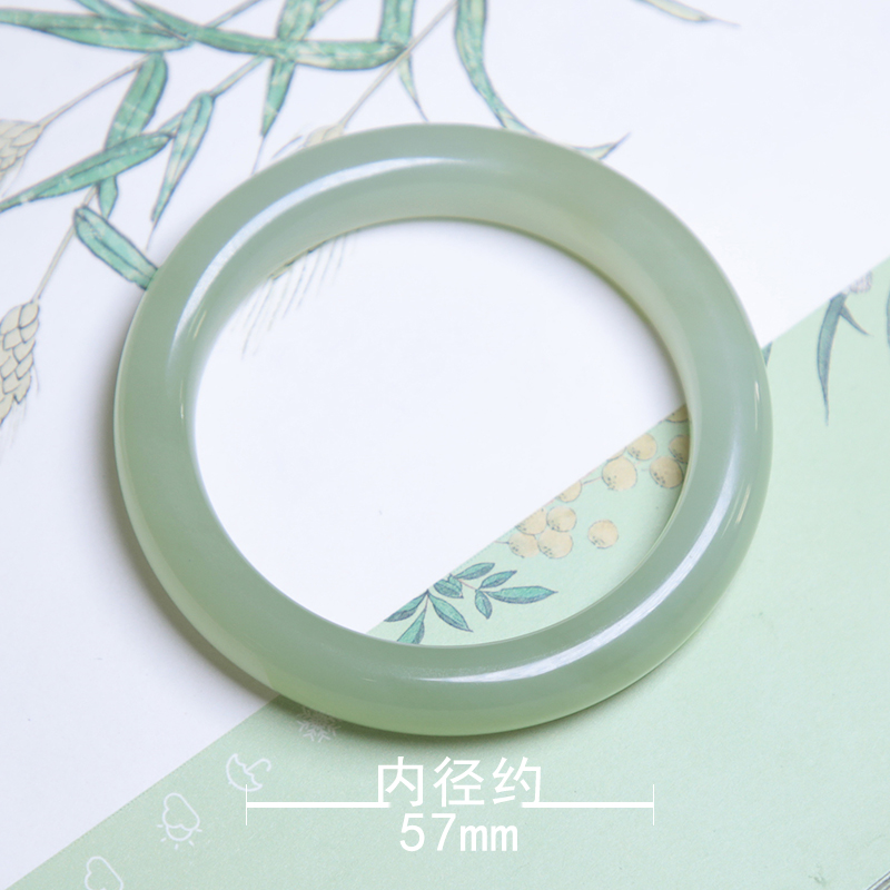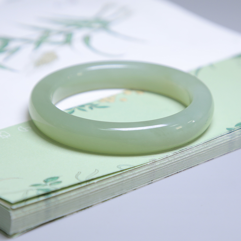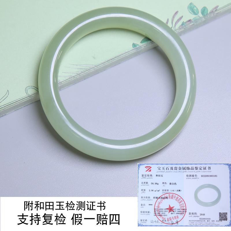 珪宝和田玉青白玉宽条手镯女款平安镯天然玉石圈口57mm带证书3181