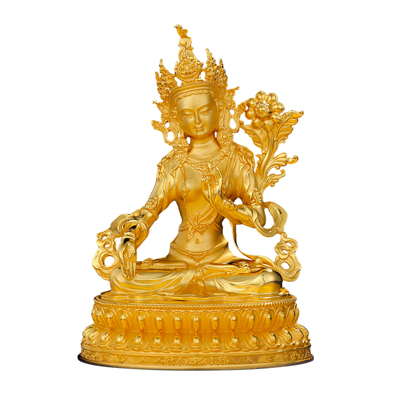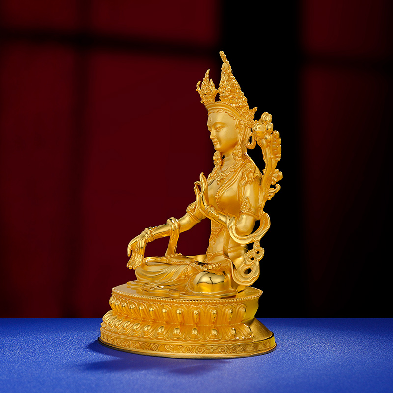 白度母S999纯银镀金供桌佛像摆件观世音居家用佛像摆件11cm