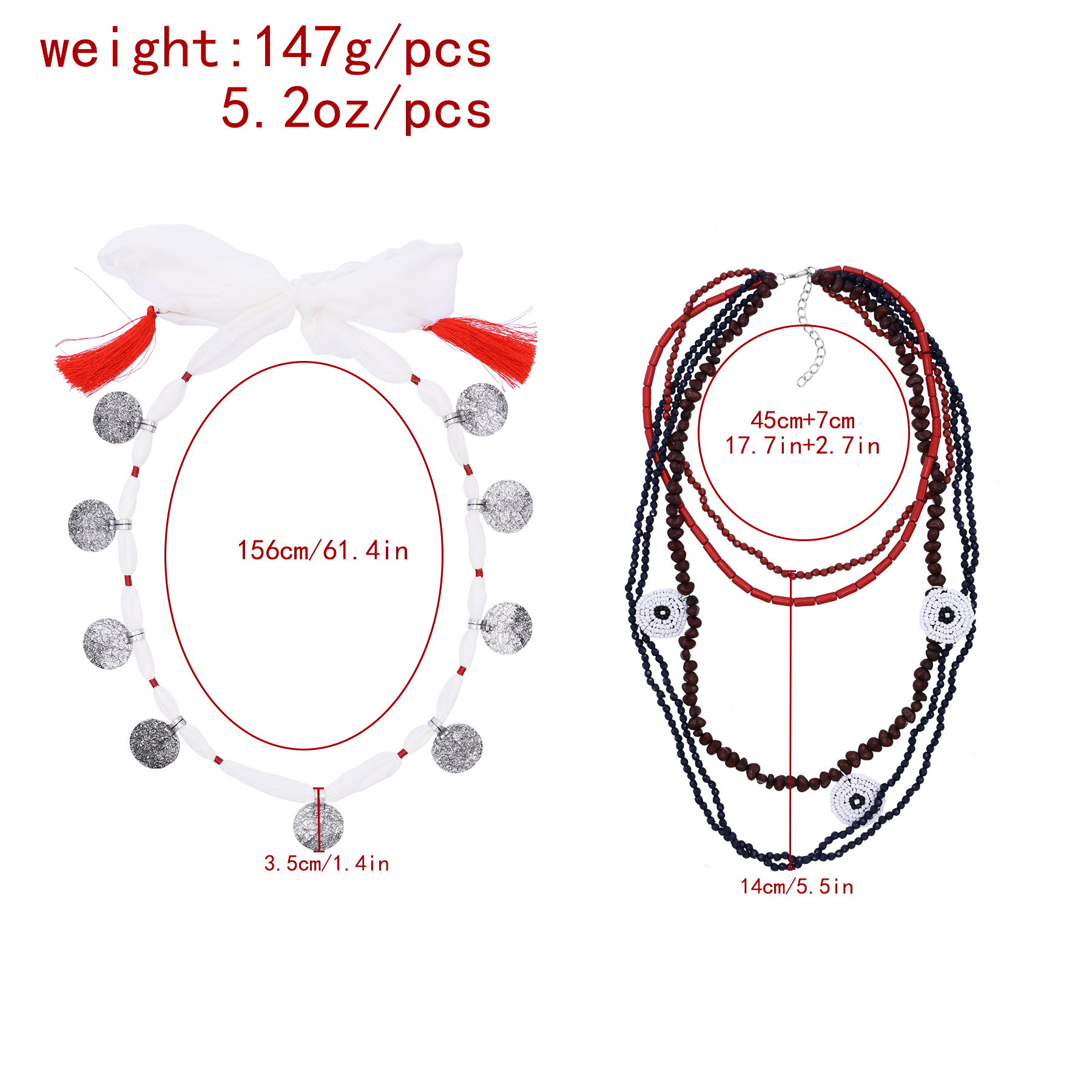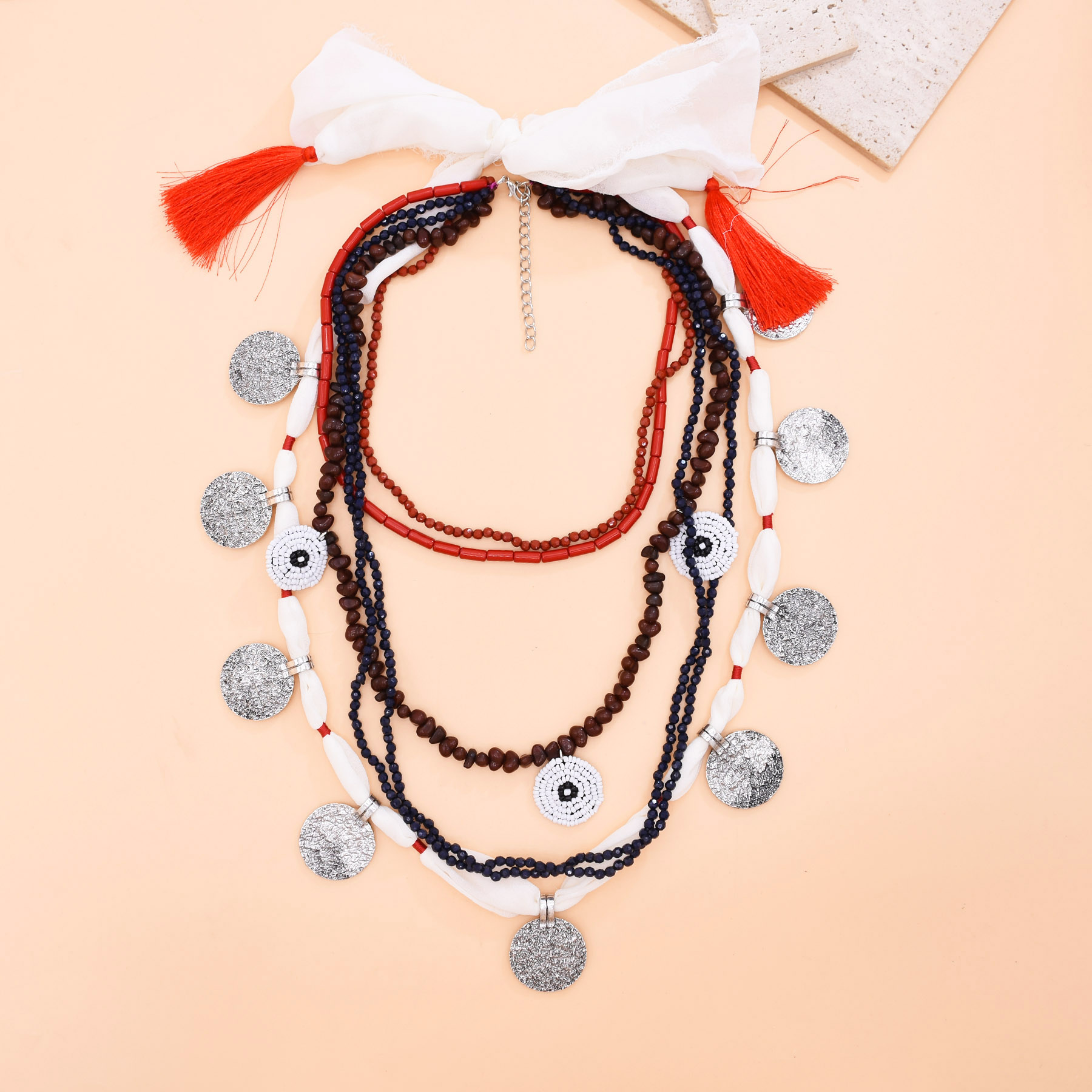 波西米亚度假风手工串珠瀑布式项链欧美多层叠戴项饰旅游写真配饰